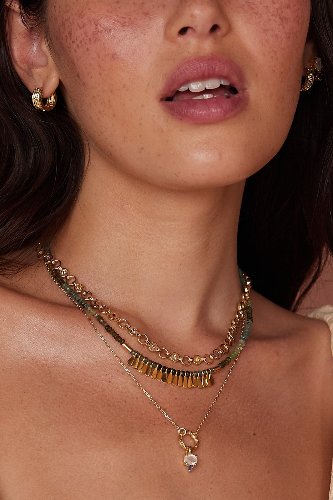 Ellipse Multistone Gold Necklace
