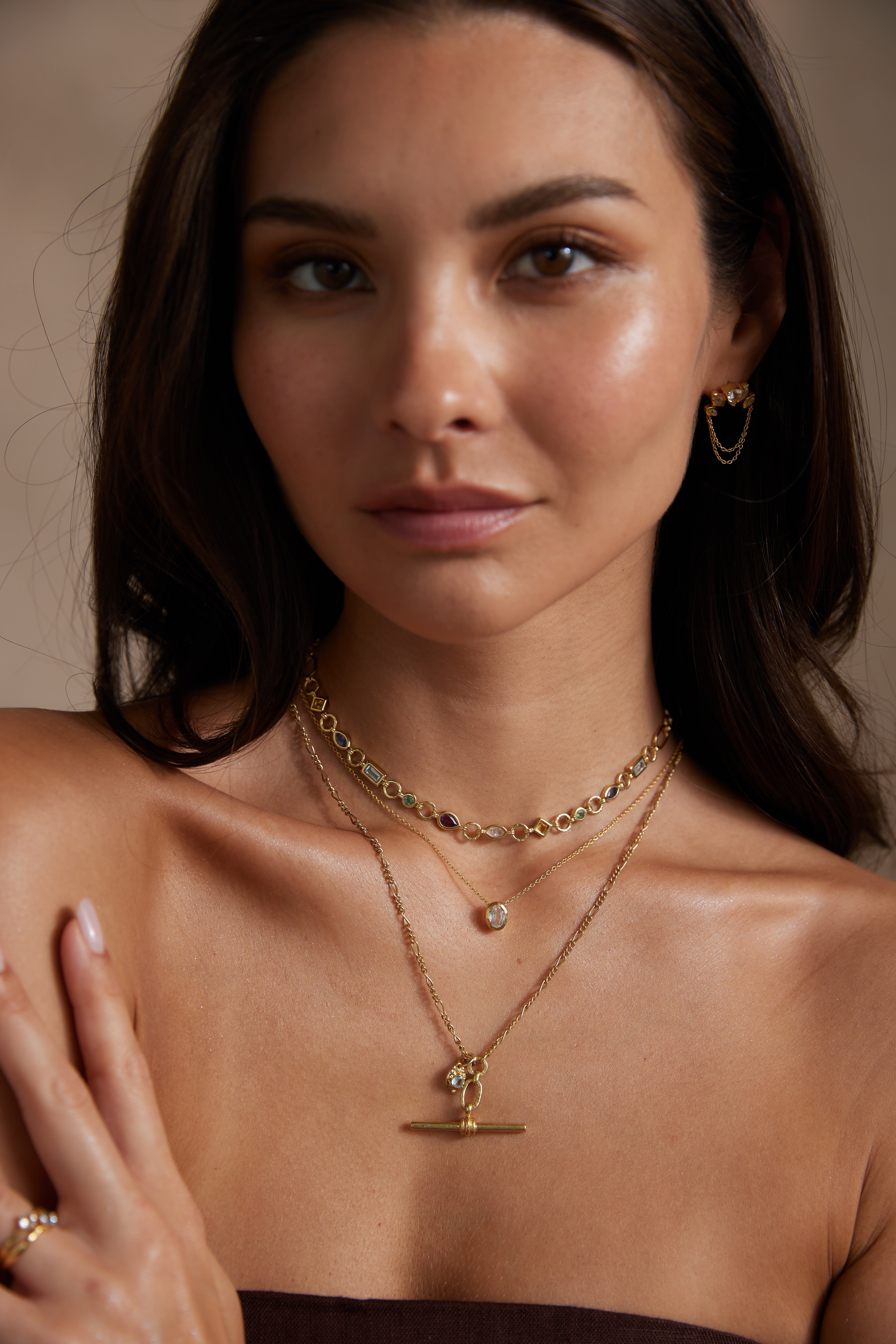 If you are looking to layer your ToniMay necklaces, particularly if you have styles where chain lengths are the same we recommend getting your hands on one of our chain extenders which will allow you to mix and match your chain lengths for layering. Our chain extenders can be used with all lobster clasp chains however are not able to be used with our toggle clasp necklaces such as the Herkimer, Alchemy or Lost Pearl necklaces.