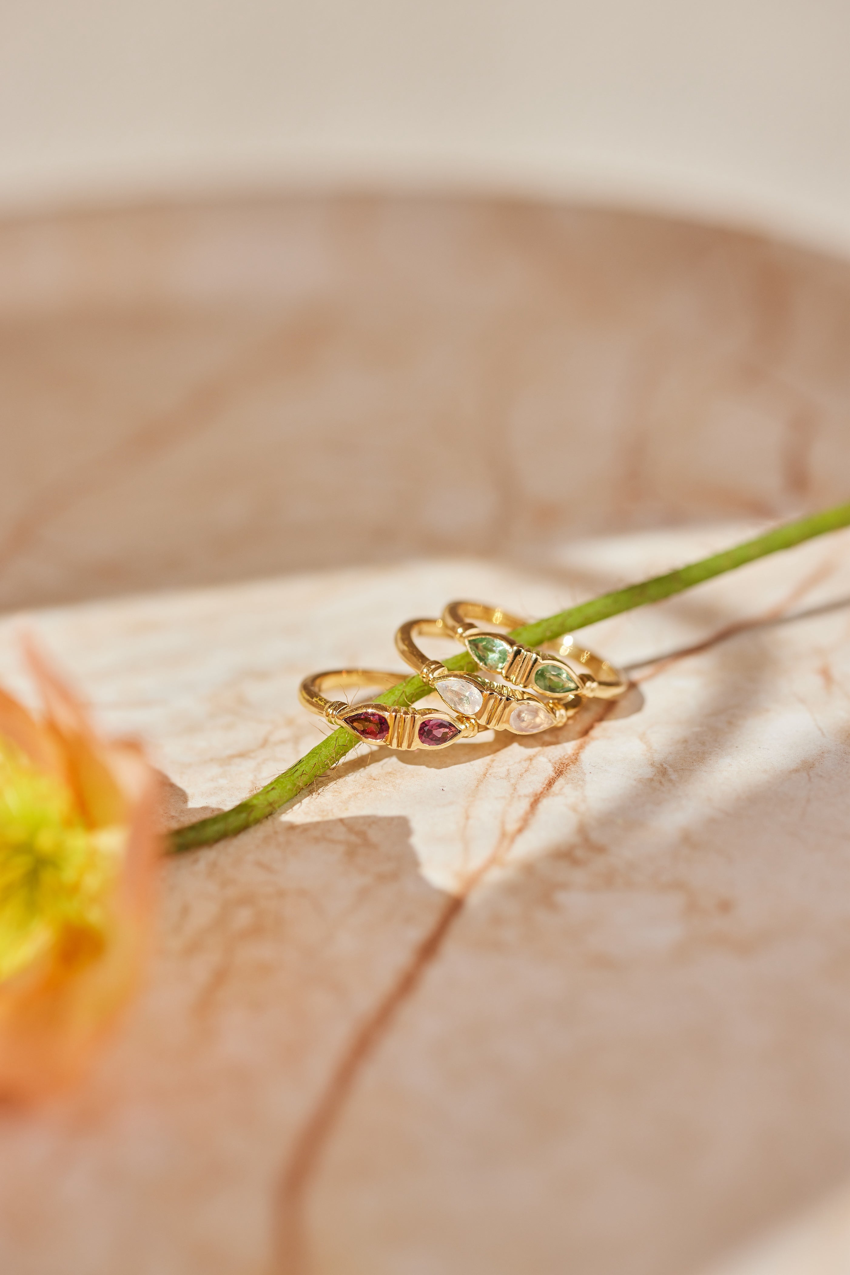 Discover stacking rings and statement designs crafted with sterling silver, gold plating, and semi-precious stones. Perfect for layering and any occasion.