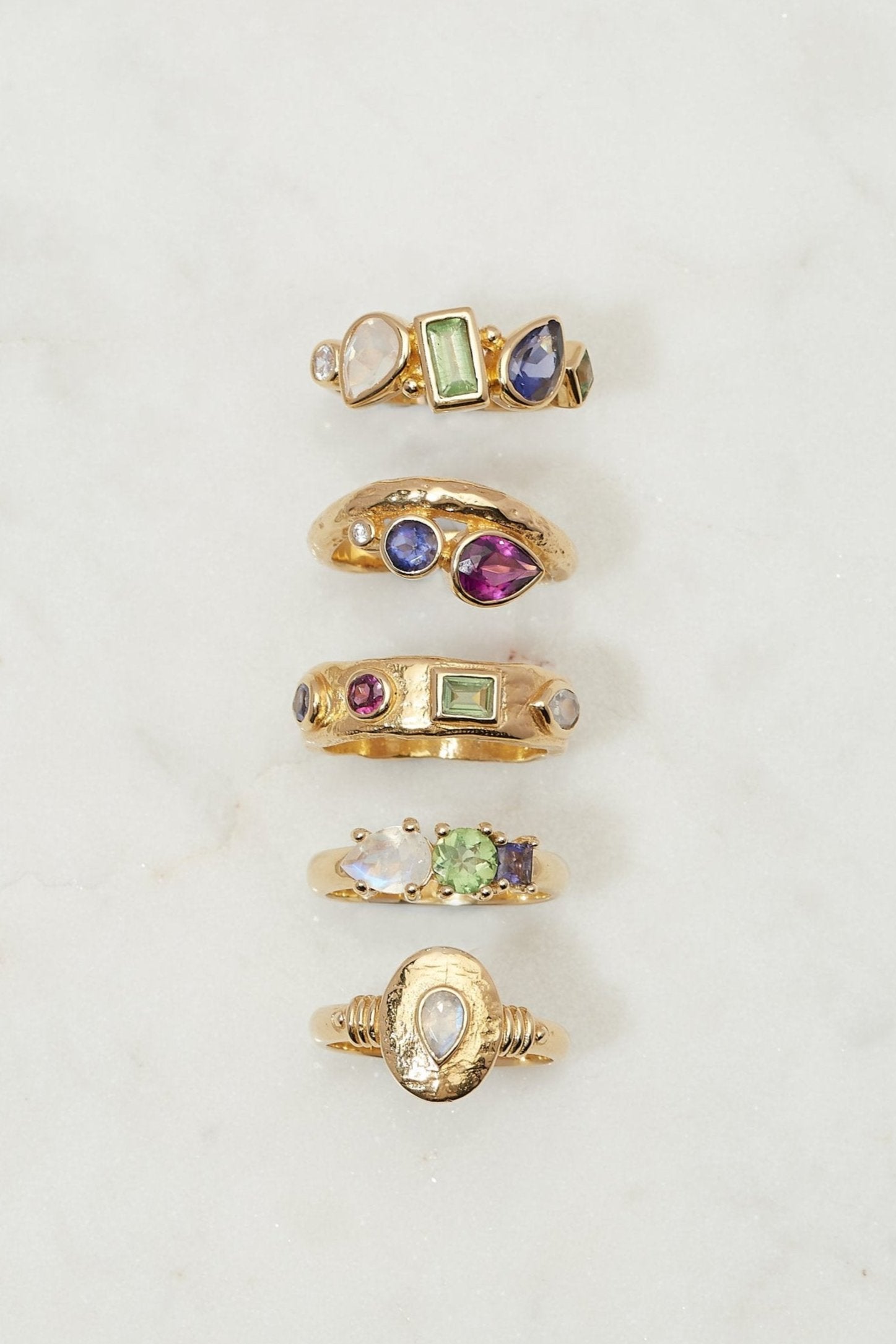 The Sorrento Ring is complimented by our Sorrento cuff, ring and necklace which each feature a delicate cluster of semi-precious stones in either Sterling Silver or 18K Gold Plated.