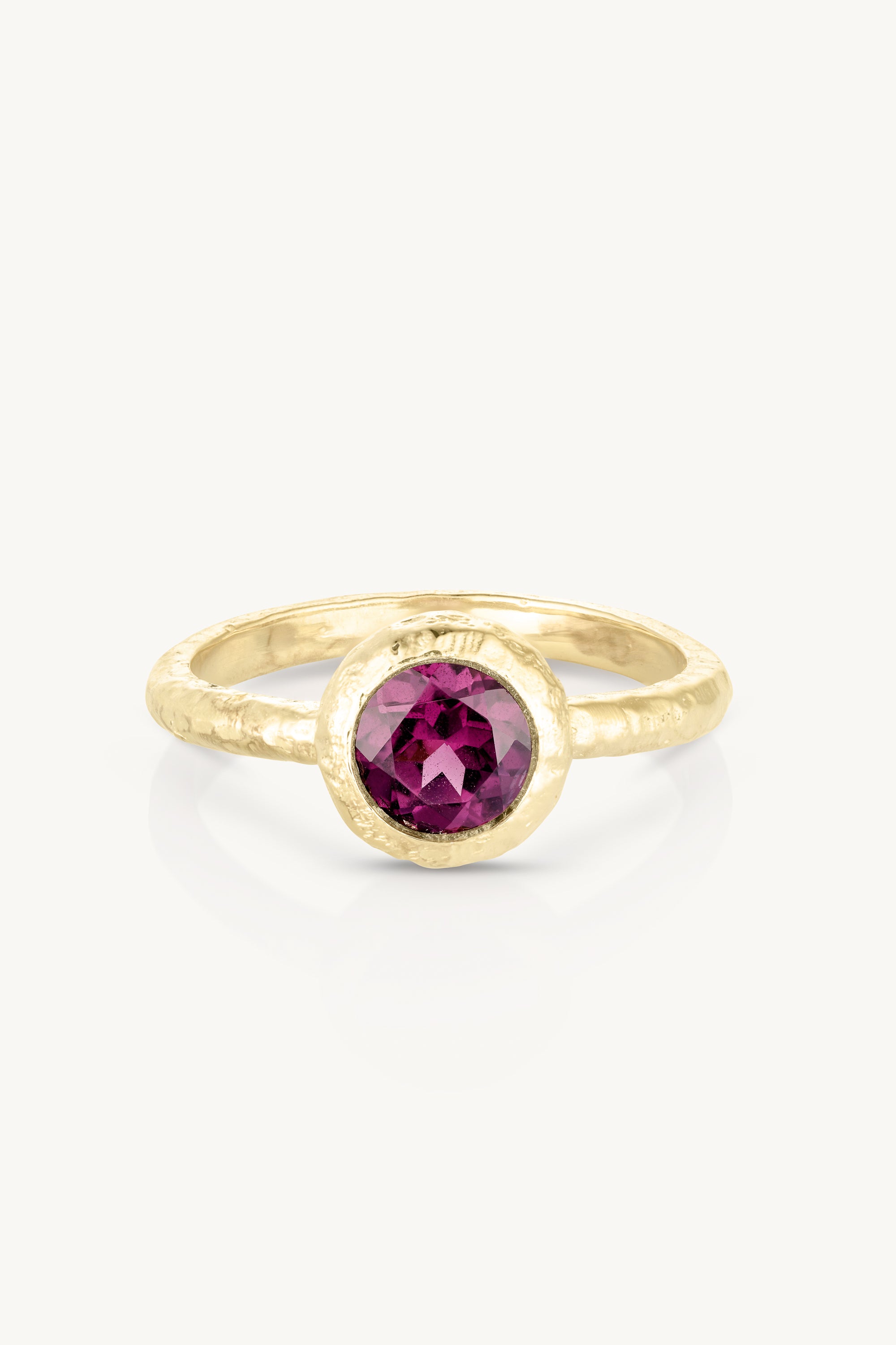 With its round bezel-set Rhodolite and textured band, Marlow adds just the right amount of charm to your look. Wear it solo, or mix and match with your other favourites to create your perfect stack.