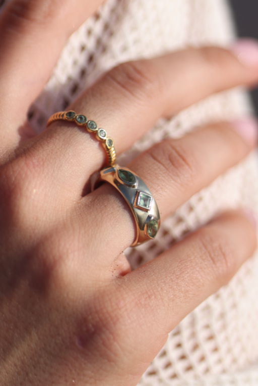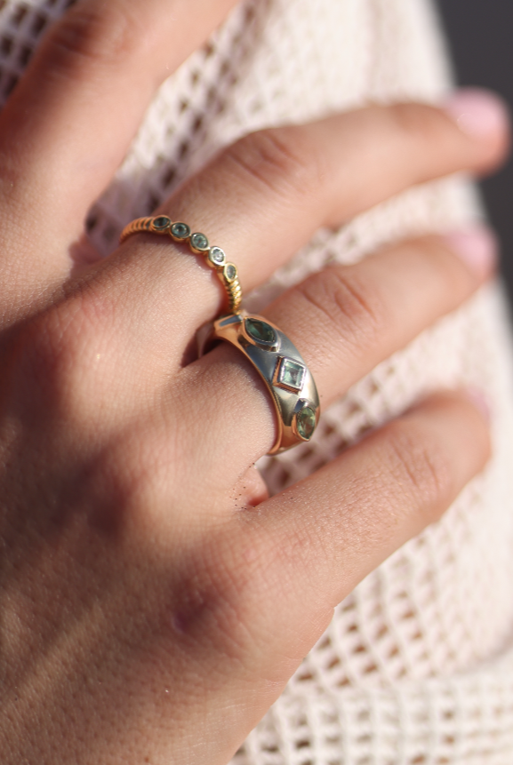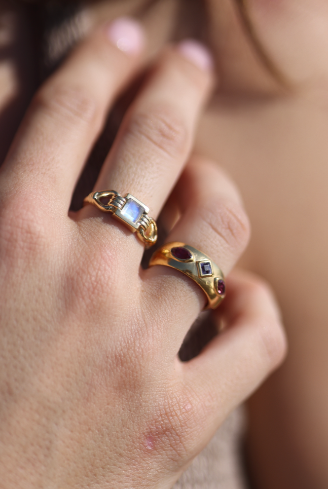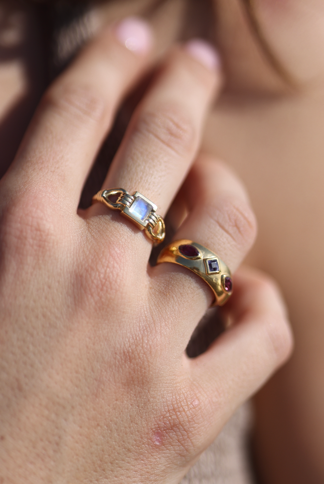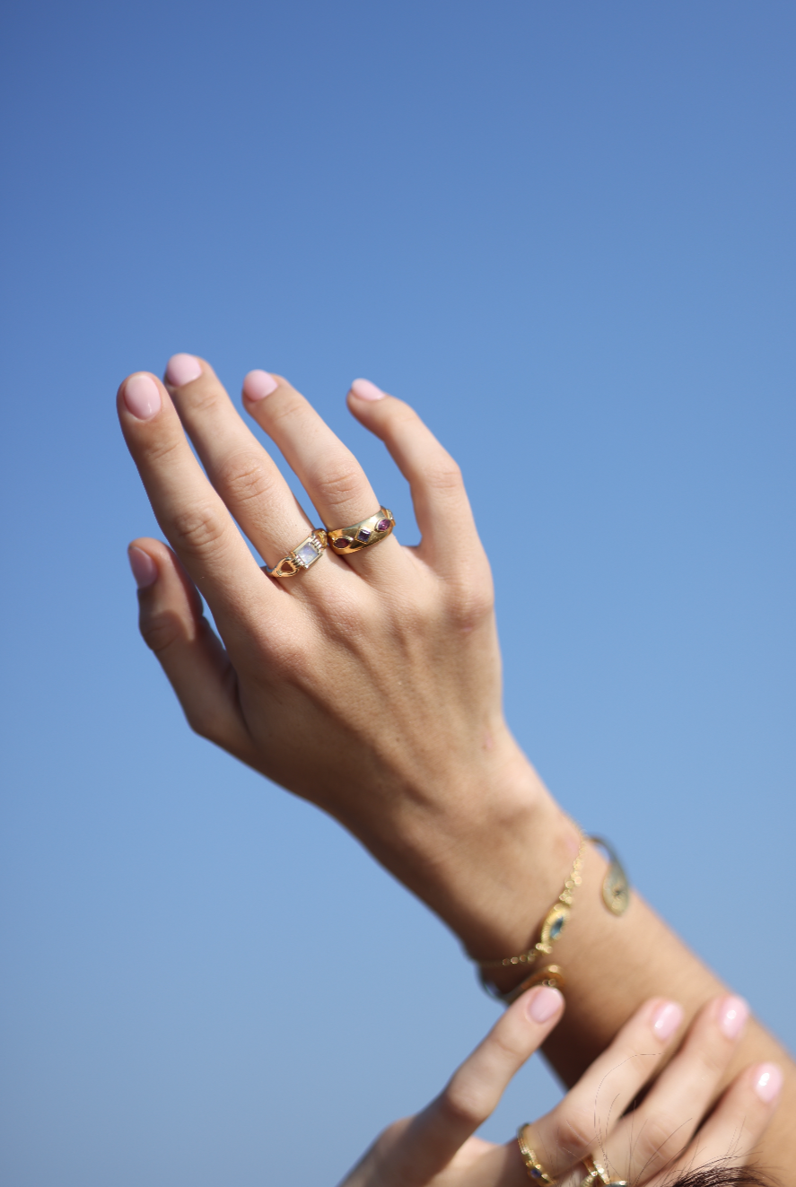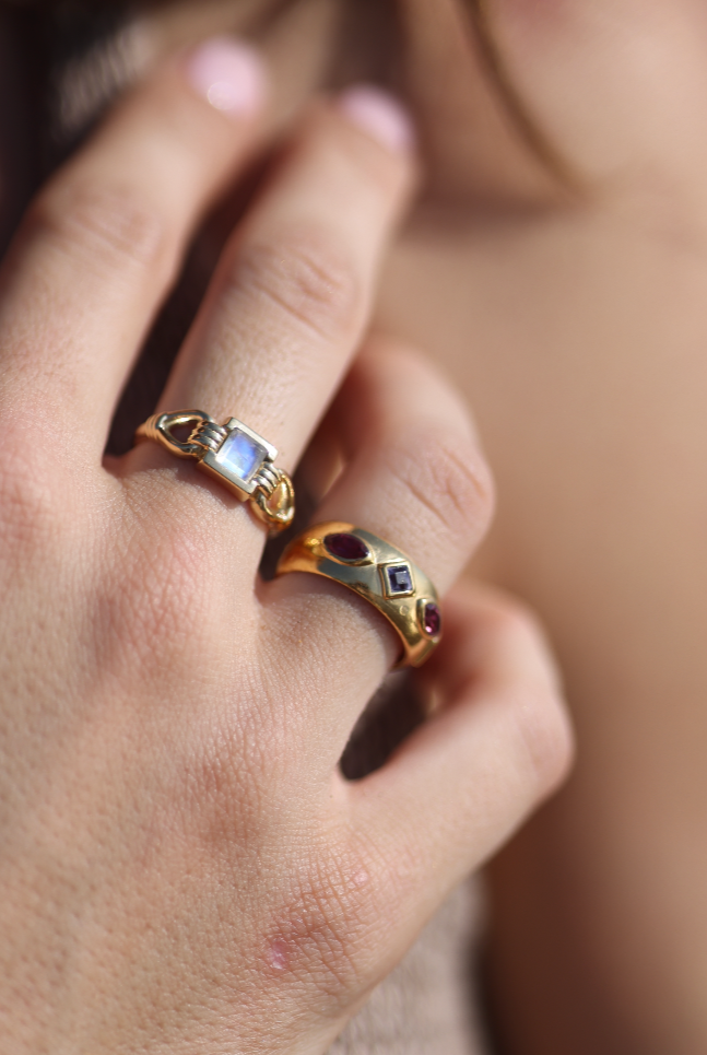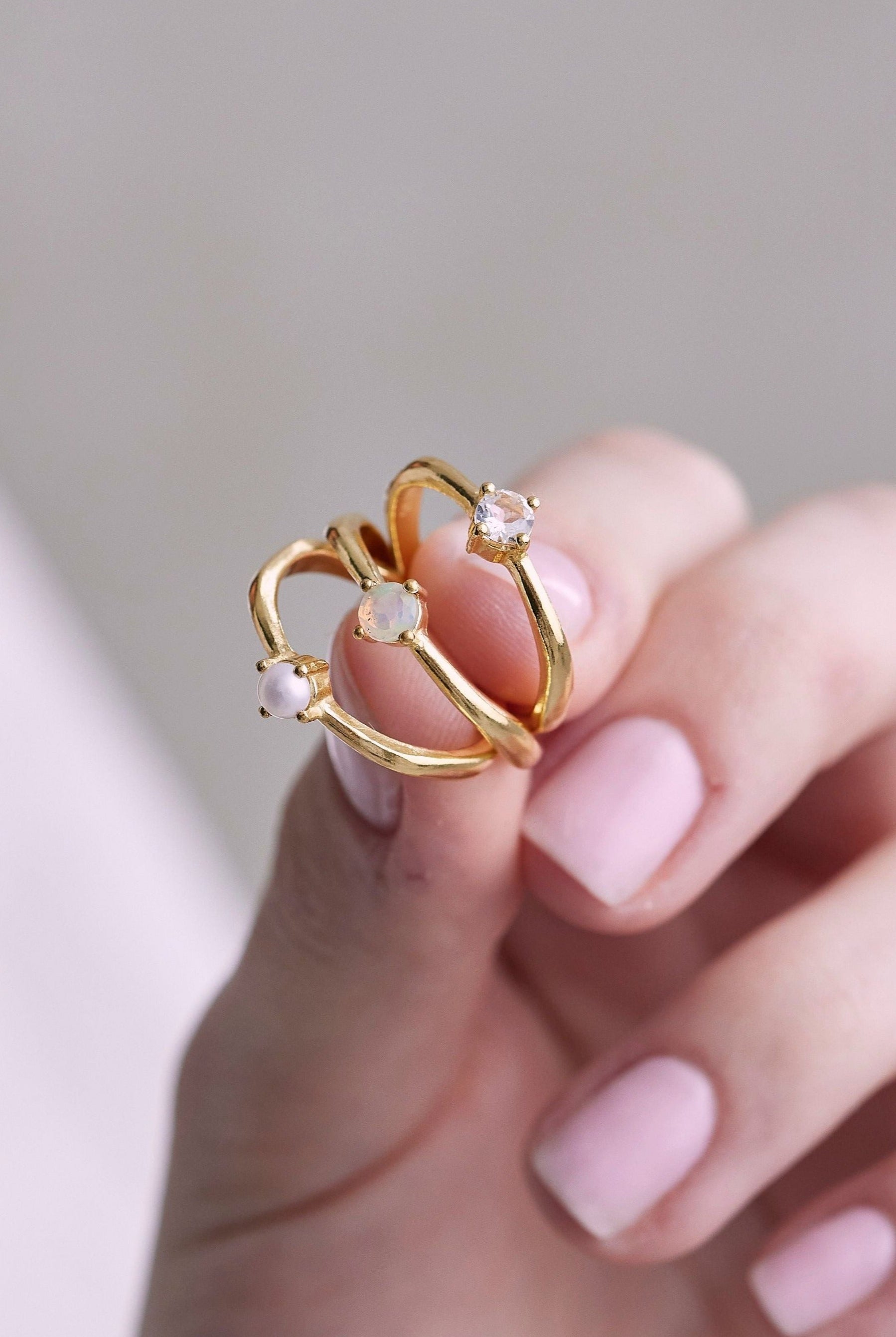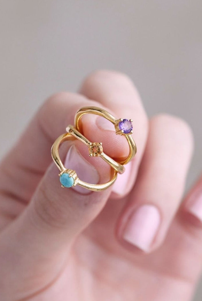 Discover stacking rings and statement designs crafted with sterling silver, gold plating, and semi-precious stones. Perfect for layering and any occasion.
