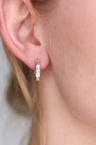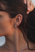 The Elodie Hoops are a curbed oval hoop with baby marquise stone claw set into the very front of the hoop. They are a high polished hoop with stud backing.