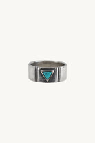 Hand made sterling silver band set with a triangular turquoise stone.