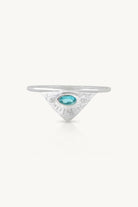 The Solaris Ring stacking ring is designed to be loved and layered with our chevron stacking bands. The Solaris features a hand cut marquise stone, a brushed finish and radiating etching.