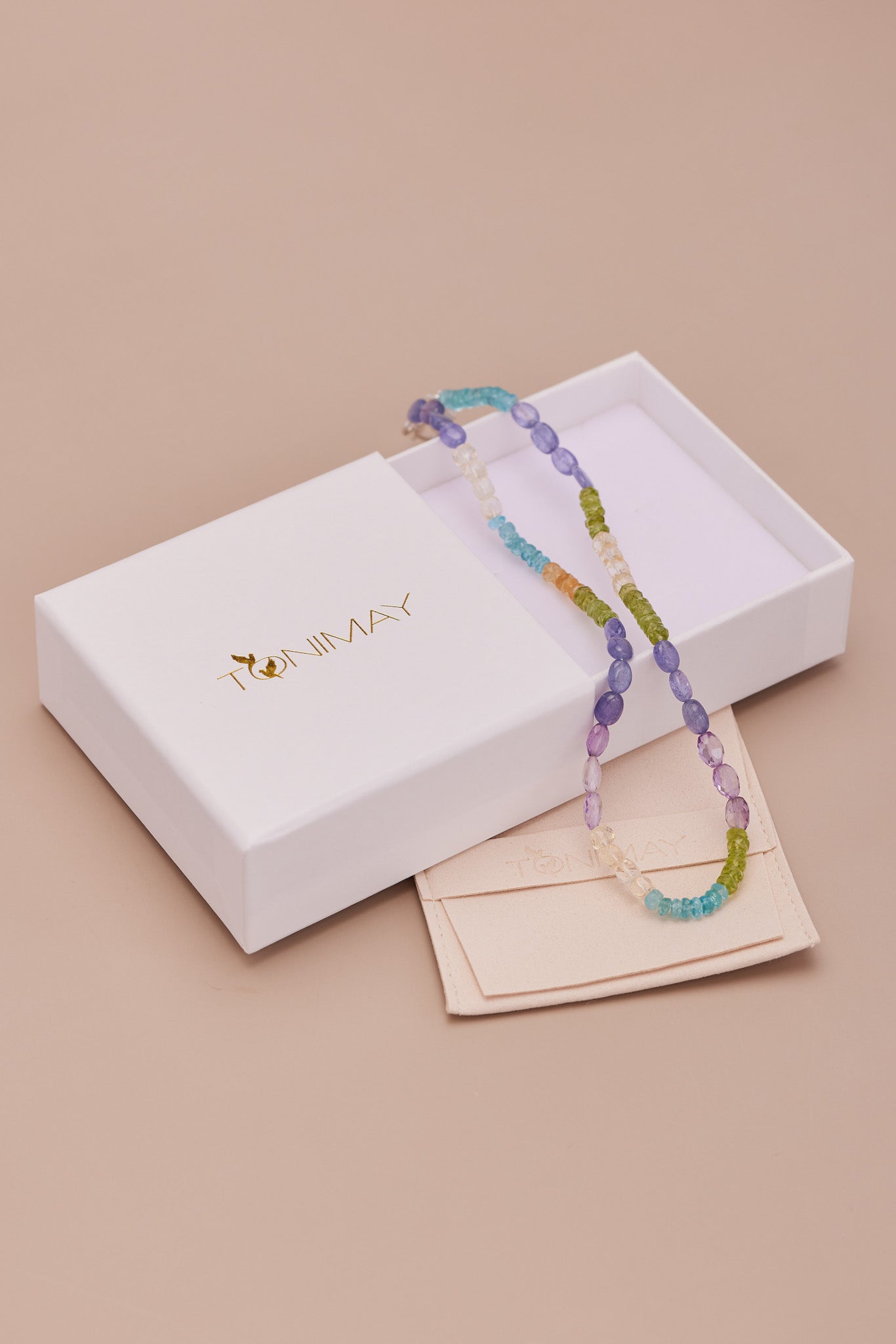 Bring effortless colour into your life with the stunning Azul Beaded Necklace.