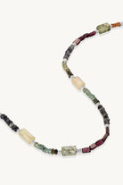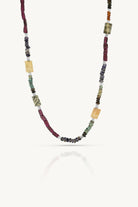 This captivating piece features a rich mix of Garnet, Iolite, Green Tourmaline, Citrine, Prehnite and Hassonite, interwoven with textured Sterling Silver spacer beads, creating a piece that is equal parts alluring and enchanting.