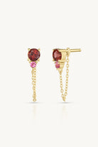 Each birthstone is claw-set in both a larger Garnet and smaller Pink Tourmaline stone, creating a subtle ombre effect. A versatile and delicate chain loops from the front of the stud, allowing you to adjust its placement.