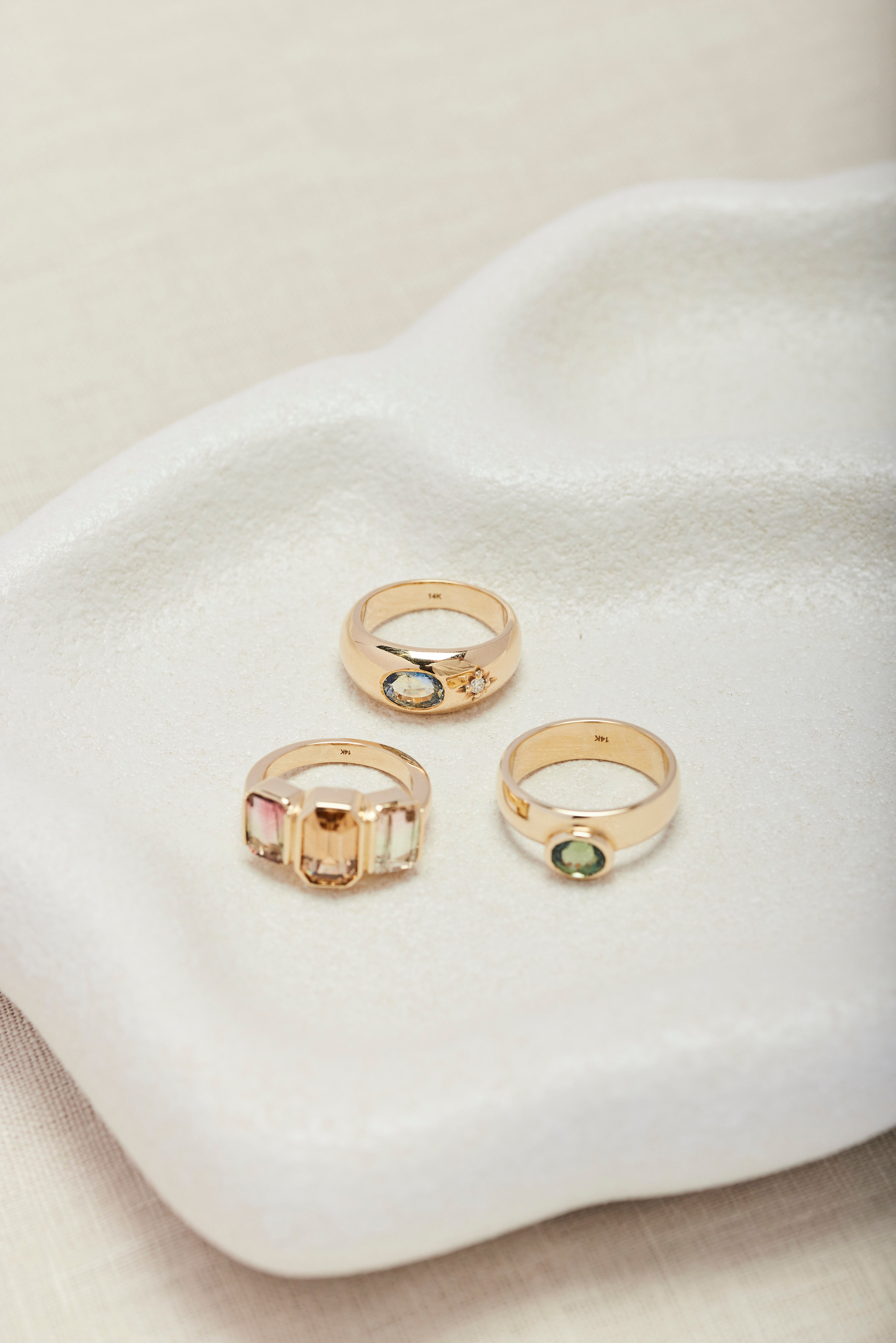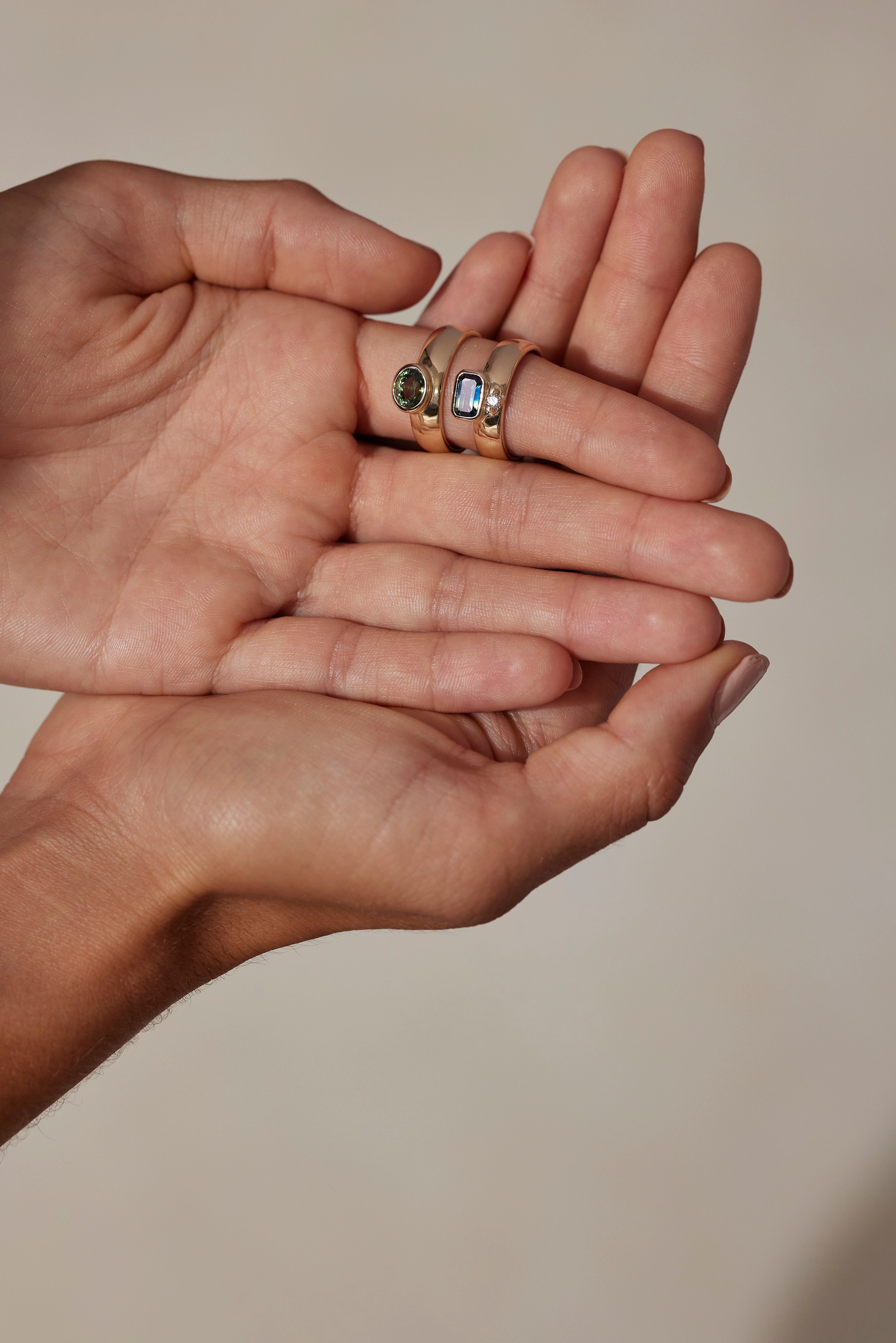 We love creating one of a kind, unique and timeless pieces whether it be for an engagement, celebration or heirloom piece. Although all our bespoke pieces available to purchase through the website are custom made to order, we also offer a custom bespoke process where we are able to work individually with a customer bring to life their ideal piece. This involves working with our designer and team to create a unique design, custom source stones, and incorporating other individual details such as hand stamping.