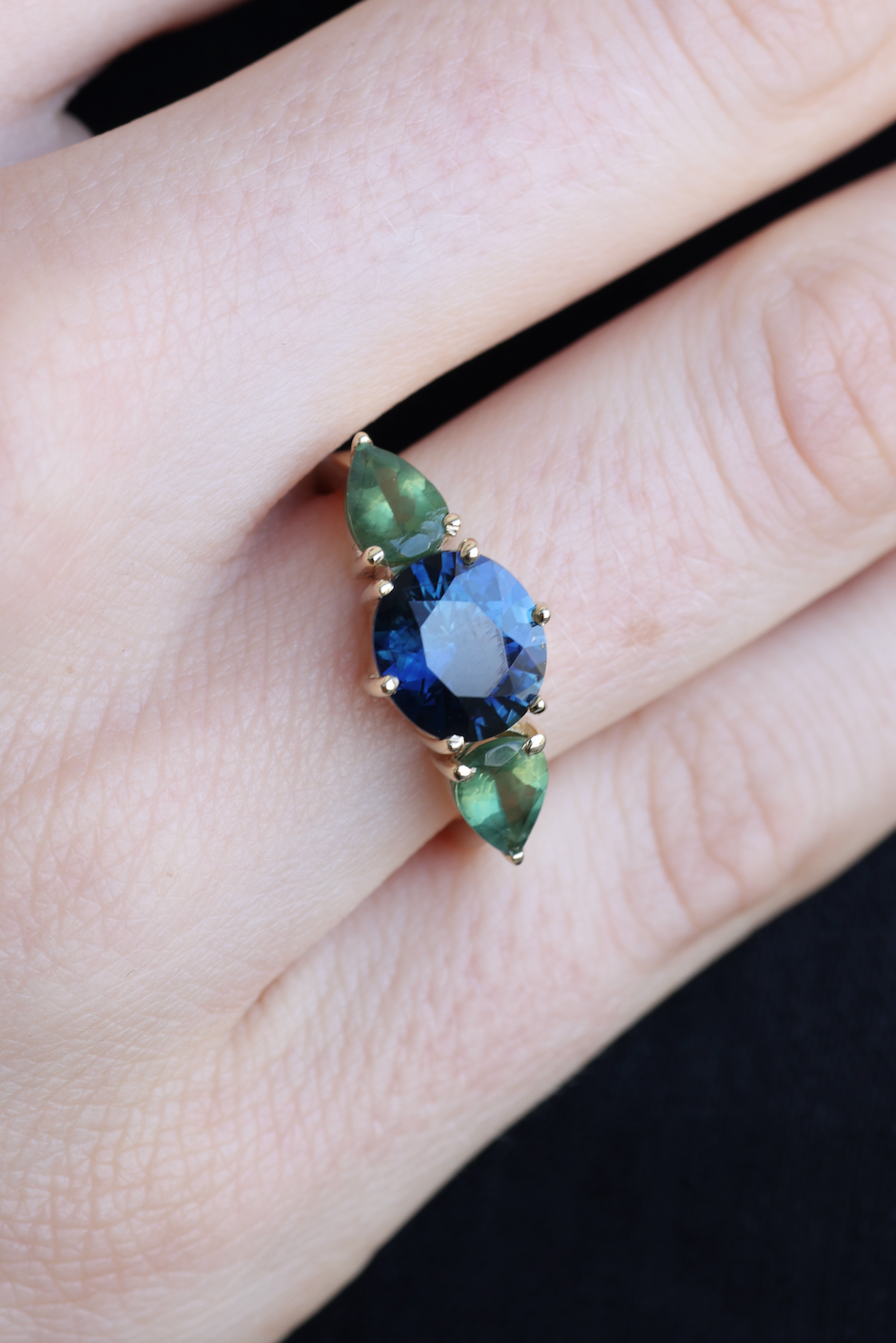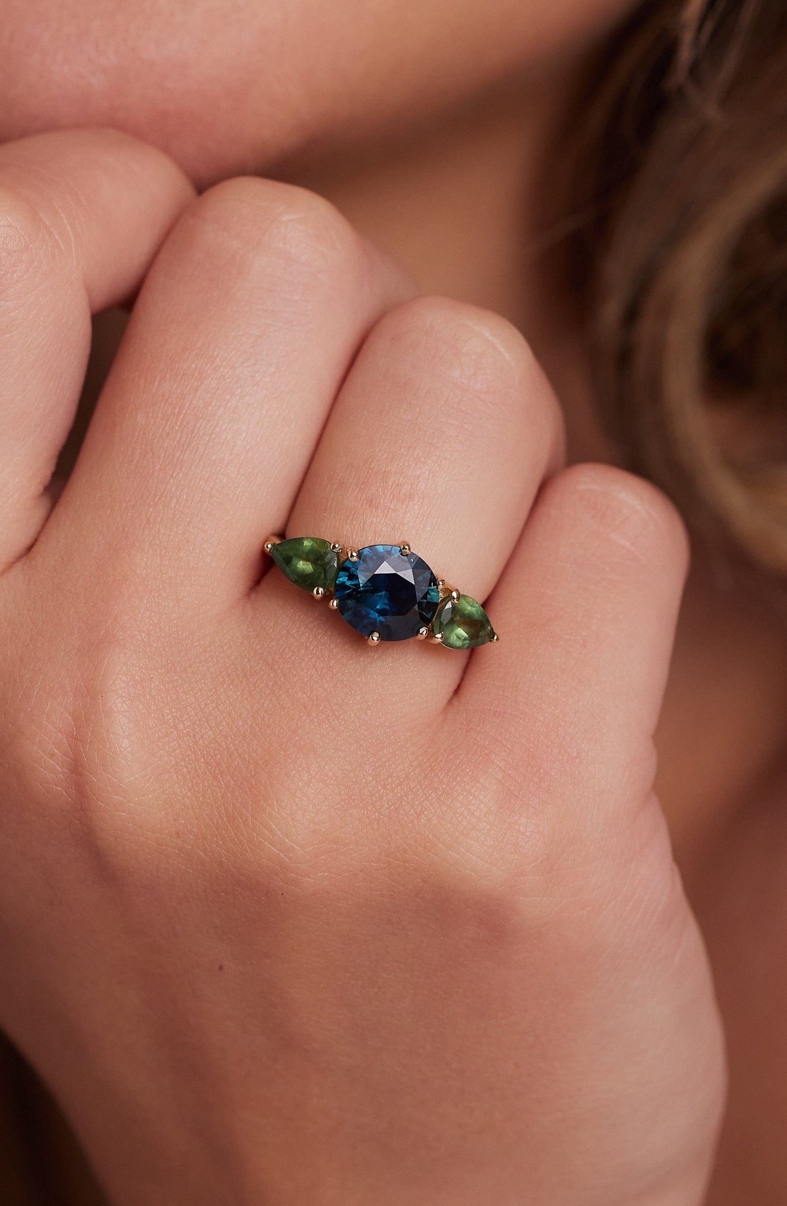 This breathtaking fancy cut pear Australian Parti Sapphire and diamond band is perhaps our favourite finery ring to date.