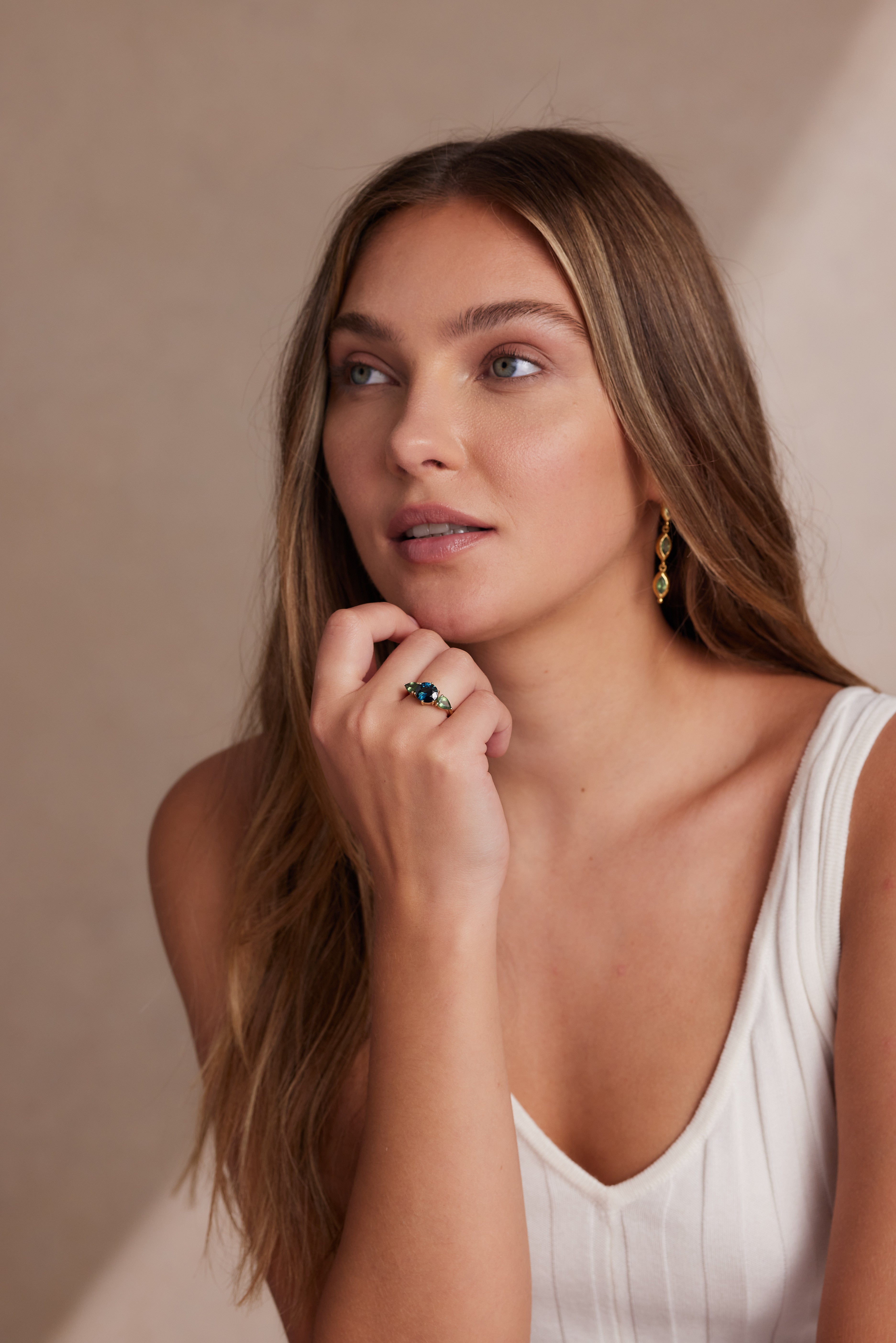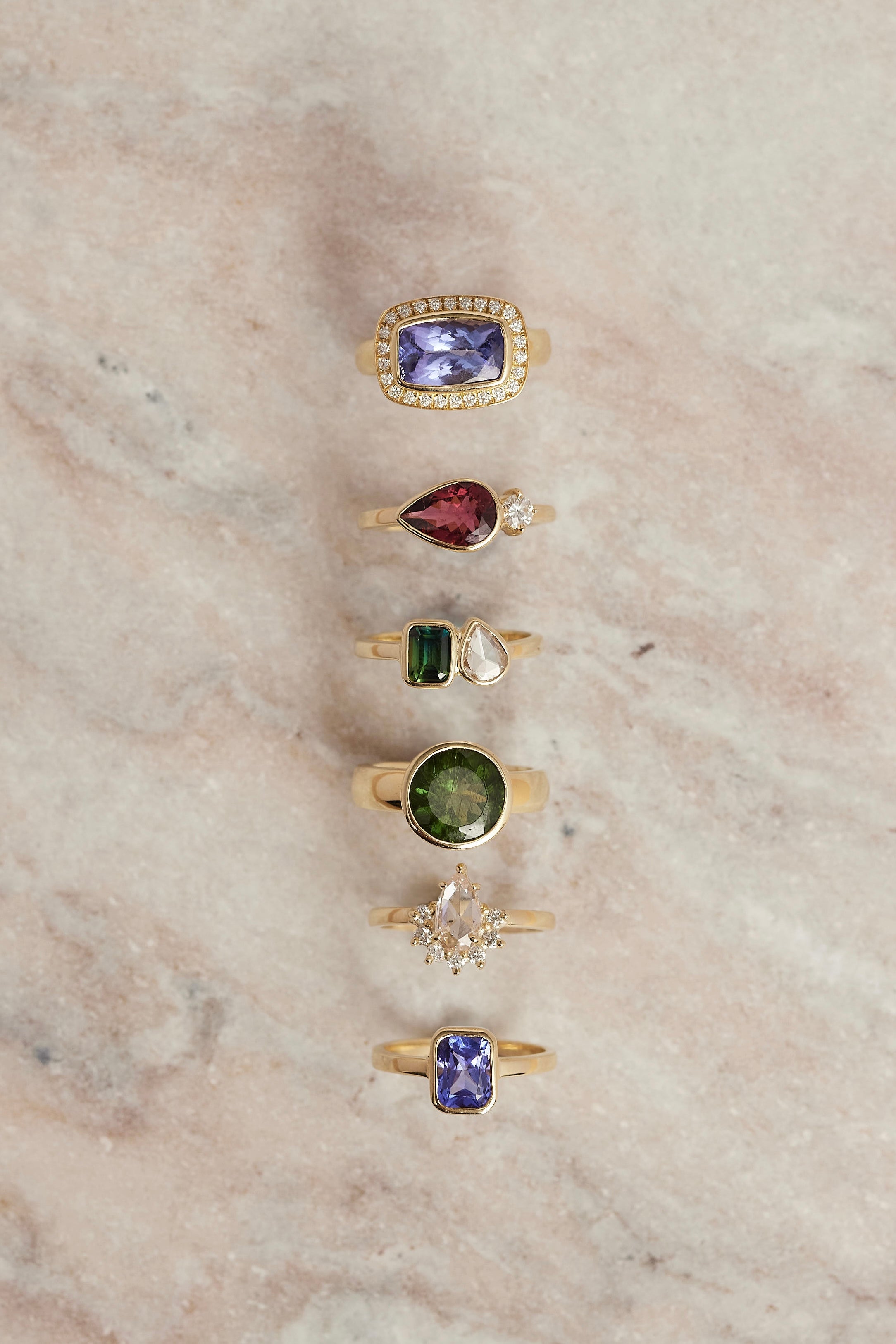 We work with a number of suppliers both locally and globally who specialise in sourcing unique and stunning semi precious and precious stones for our pieces. We strive to work with suppliers who source their stones ethically and sustainably and as a result we do avoid working with larger traditional white diamonds which are often the source of conflict.
