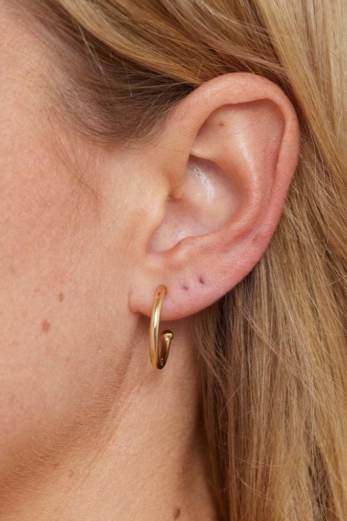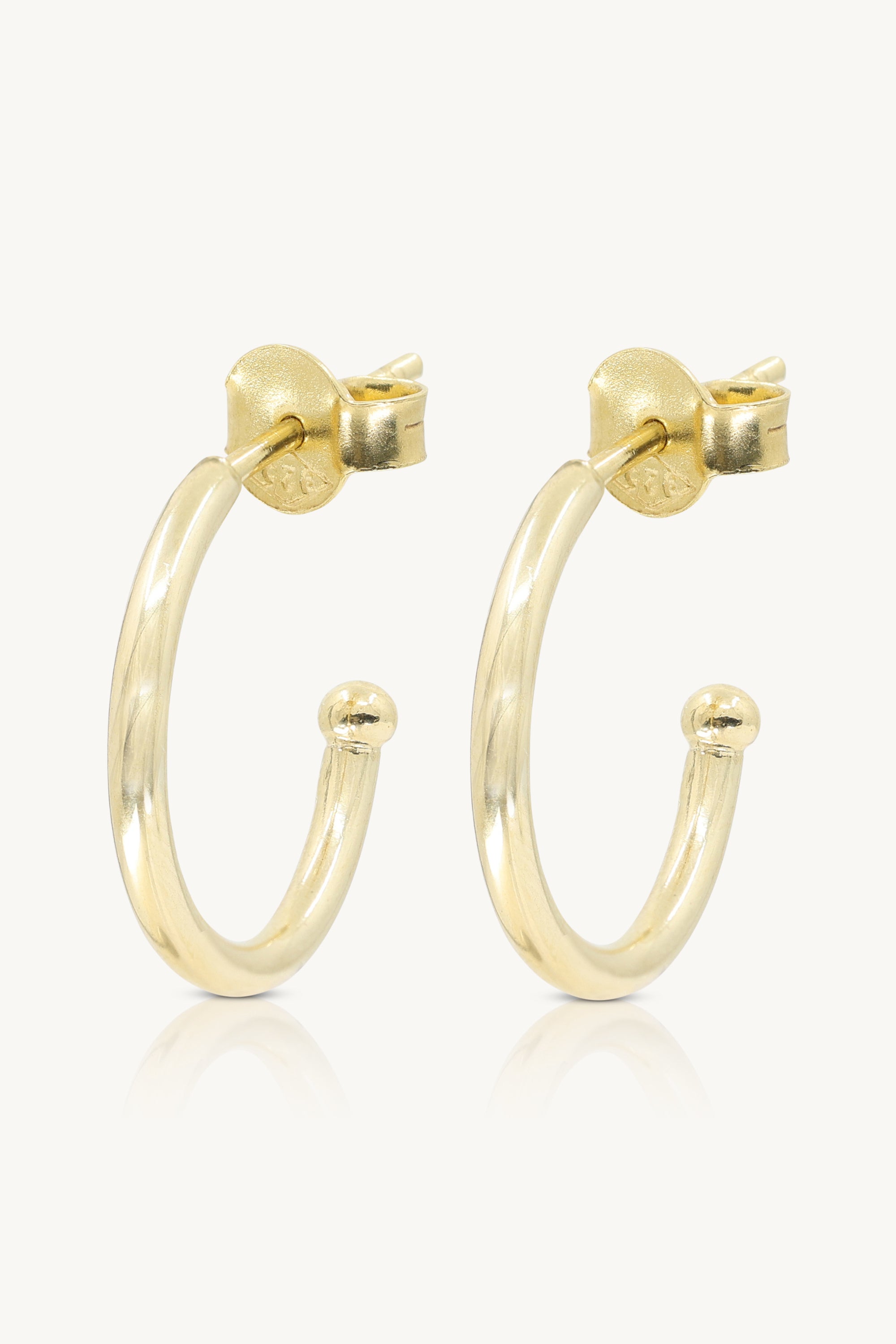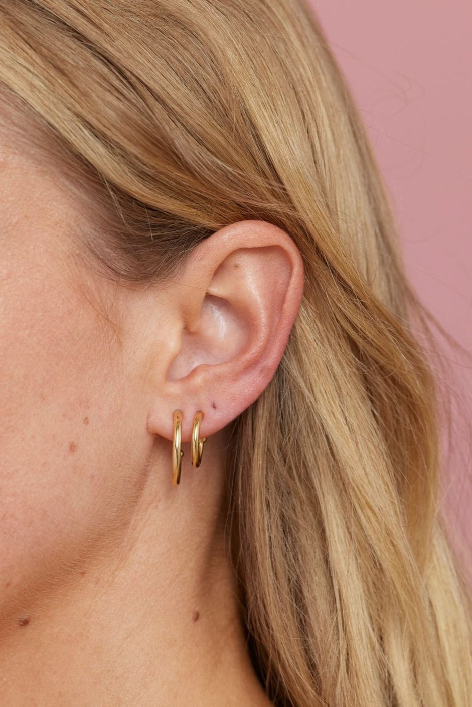 Our Polished Gold Hoops are designed to be layered and worn with our collection of earring charms. A stud backed hoop, these are designed in two sizes with a high polished finish.