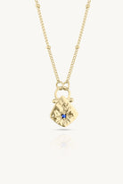 The Sapphire Star Necklace necklace features a natural dark blue Sapphire set into a hand hammered pendant, this pendant sits on our signature dot chain.