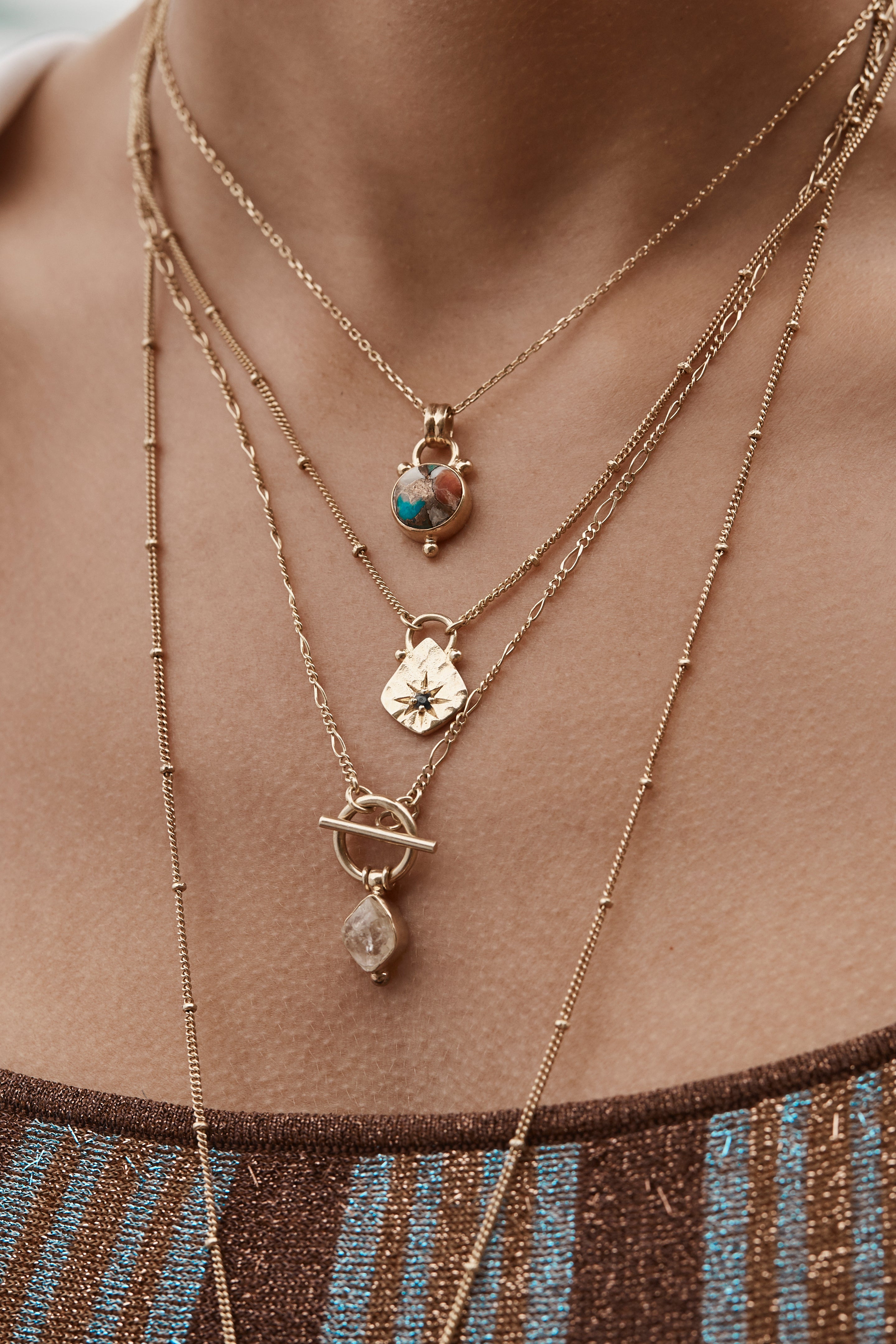 If you are looking to layer your ToniMay necklaces, particularly if you have styles where chain lengths are the same we recommend getting your hands on one of our chain extenders which will allow you to mix and match your chain lengths for layering. Our chain extenders can be used with all lobster clasp chains however are not able to be used with our toggle clasp necklaces such as the Herkimer, Alchemy or Lost Pearl necklaces.