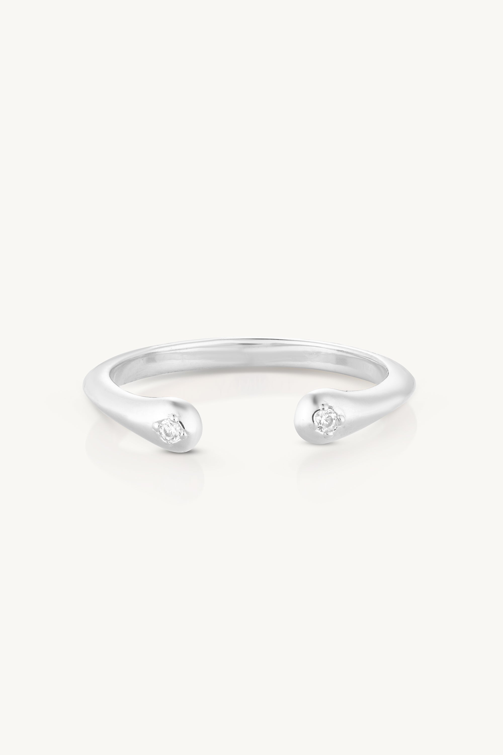 Two twinkling Cubic Zirconias dazzle each end of its curved, open design making it the perfect ring for layering around your favourite pieces.