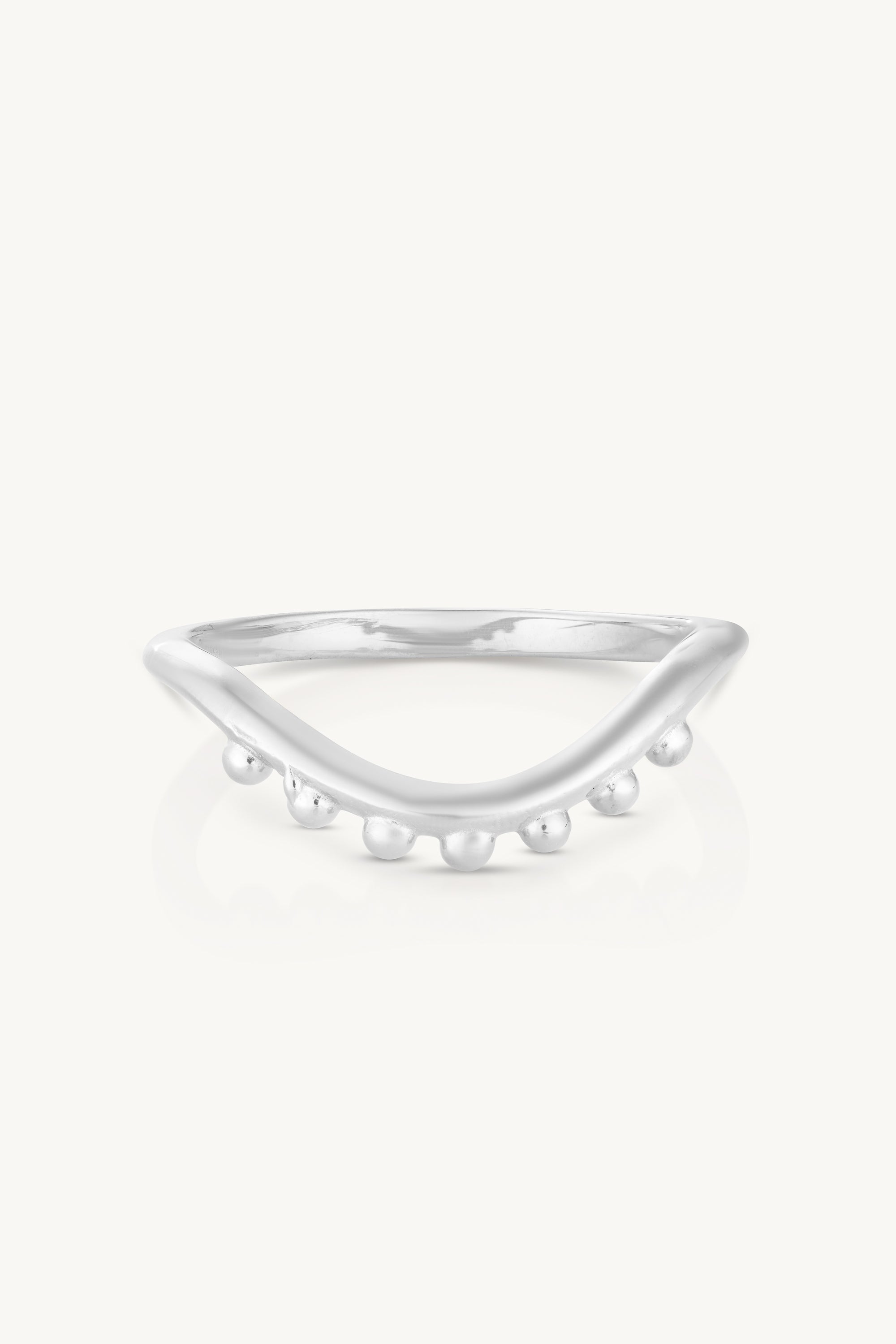 The Noble Crescent Stacking Ring features a crown of delicate ball details across the band. Designed to stack seamlessly with your other treasures, it adds a regal touch to any look.