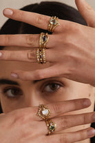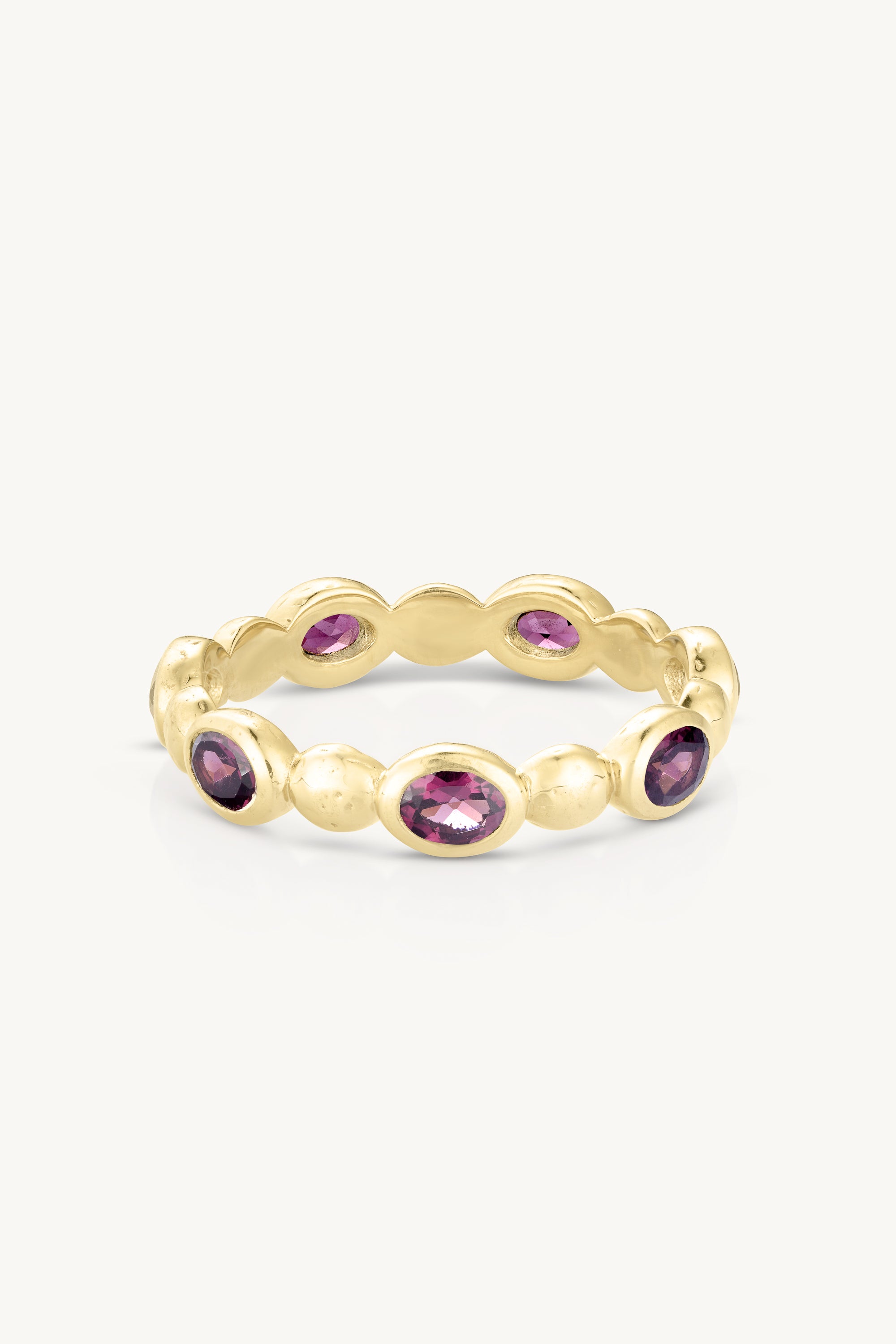 Pebble by pebble, Rhodolite by Rhodolite - the Pebble Stacker brings effortless layering to your stack. Each oval stone is nestled between textured pebble motifs.