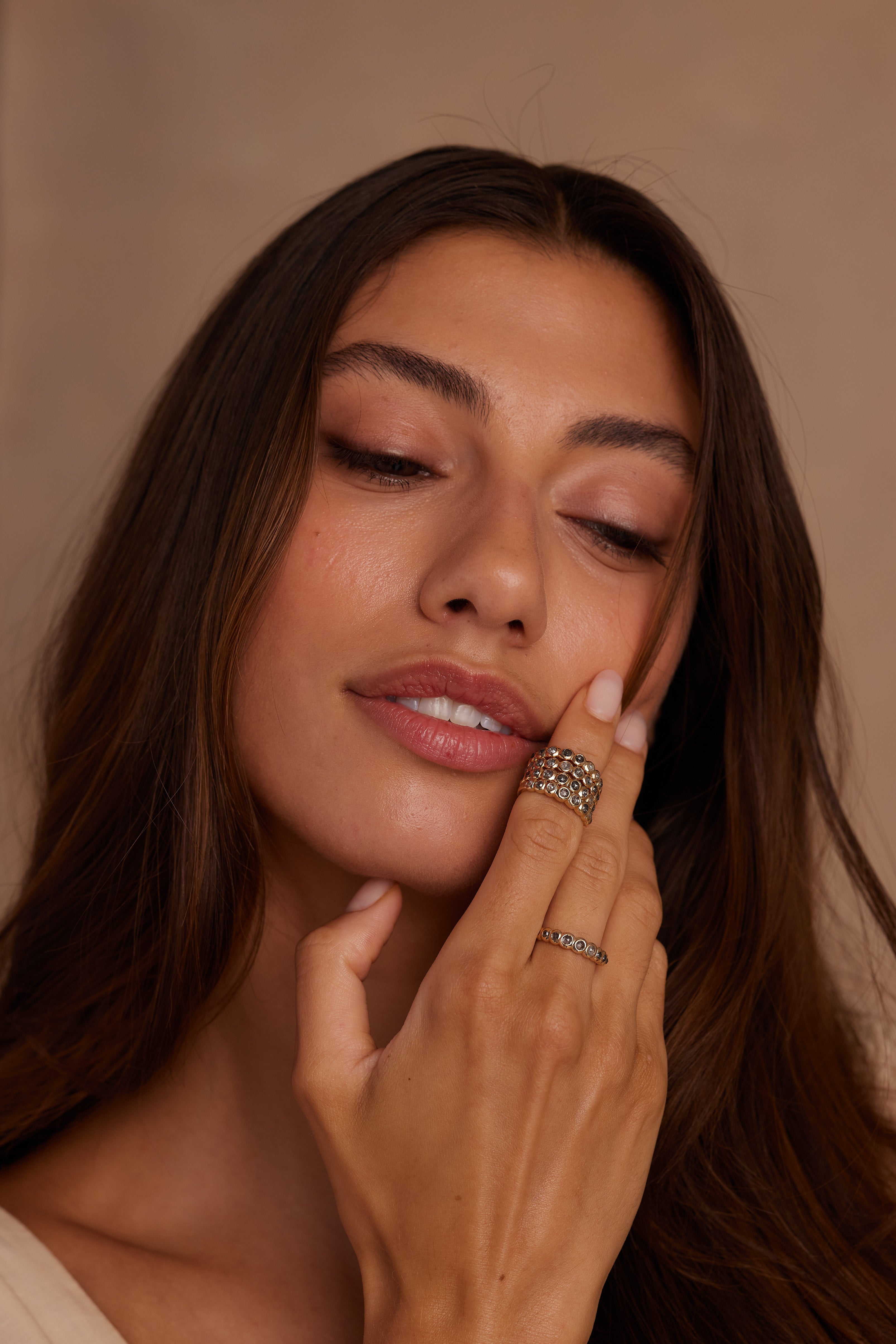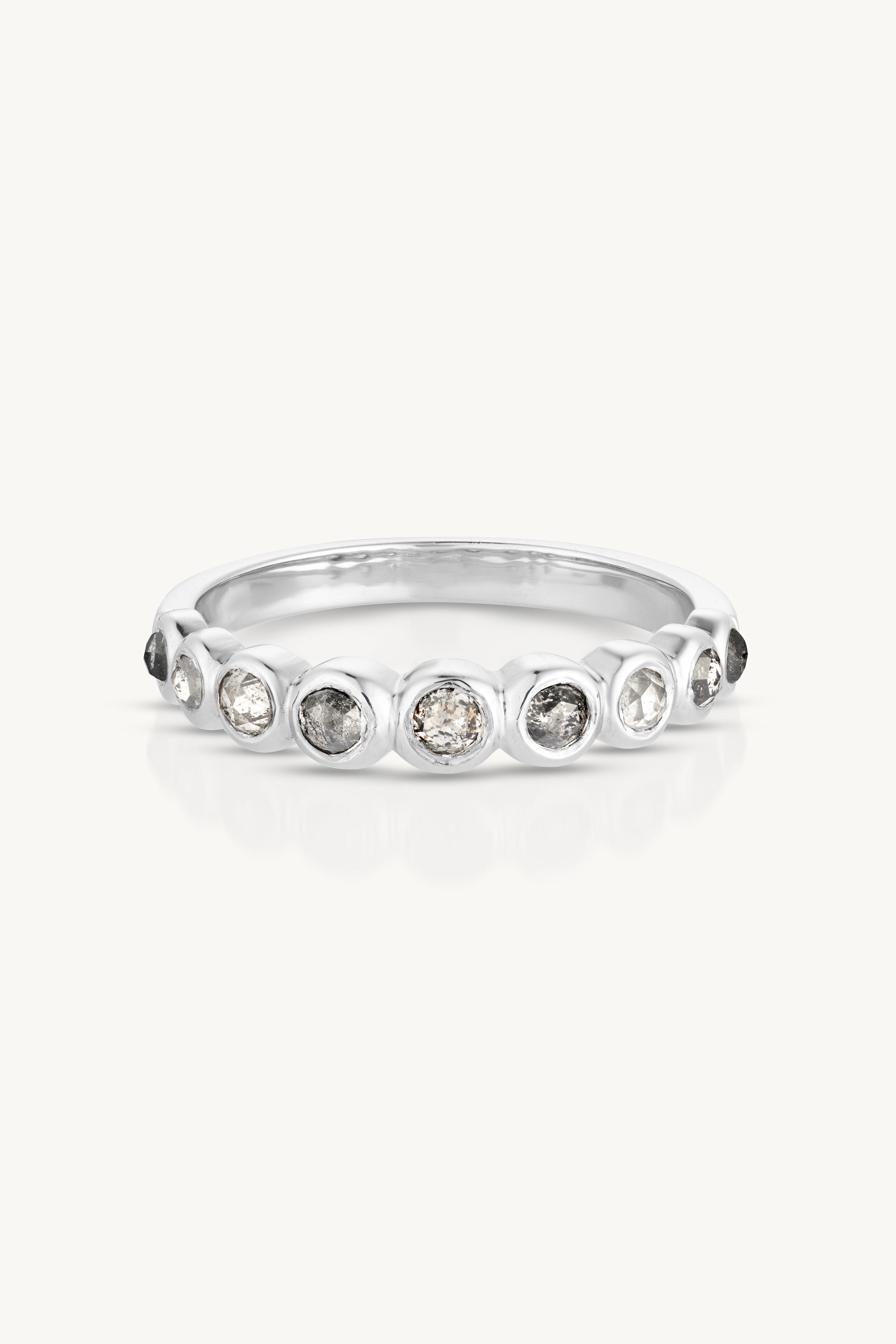 A celebration of love in all its beautiful complexity. This 14K Yellow Solid Gold band is adorned with Grey Diamonds set one by one in delicate bezels, wrapping the finger in quiet brilliance. Each diamond is naturally one of a kind, with soft smokey hues and subtle shifts that reflect the uniqueness of your story.