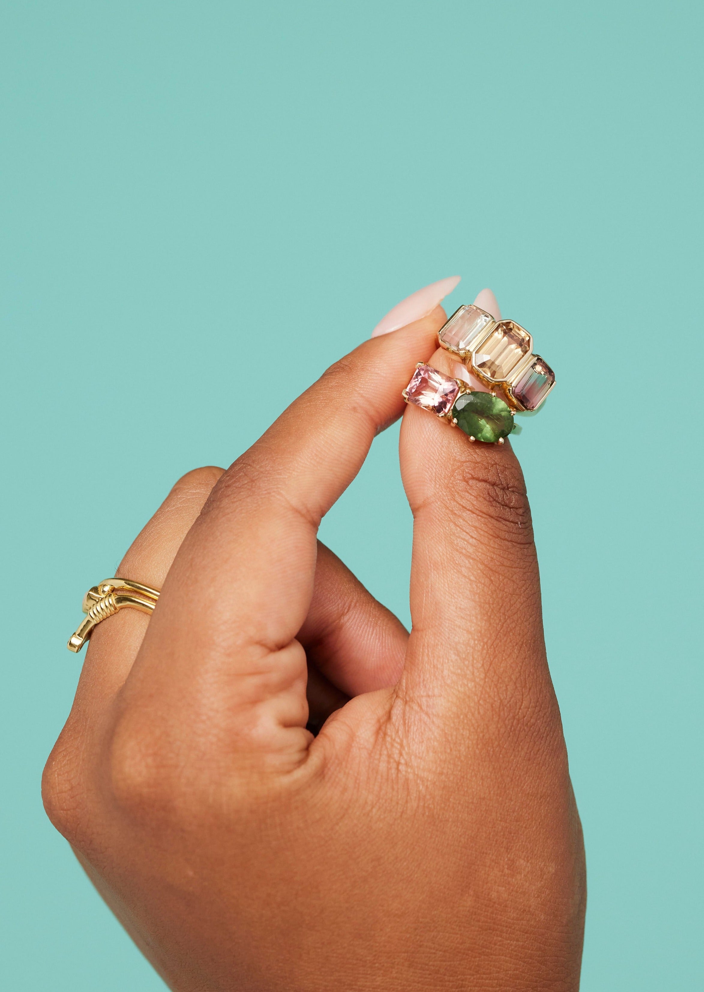 14k Yellow Watermelon Tourmaline Trilogy Band