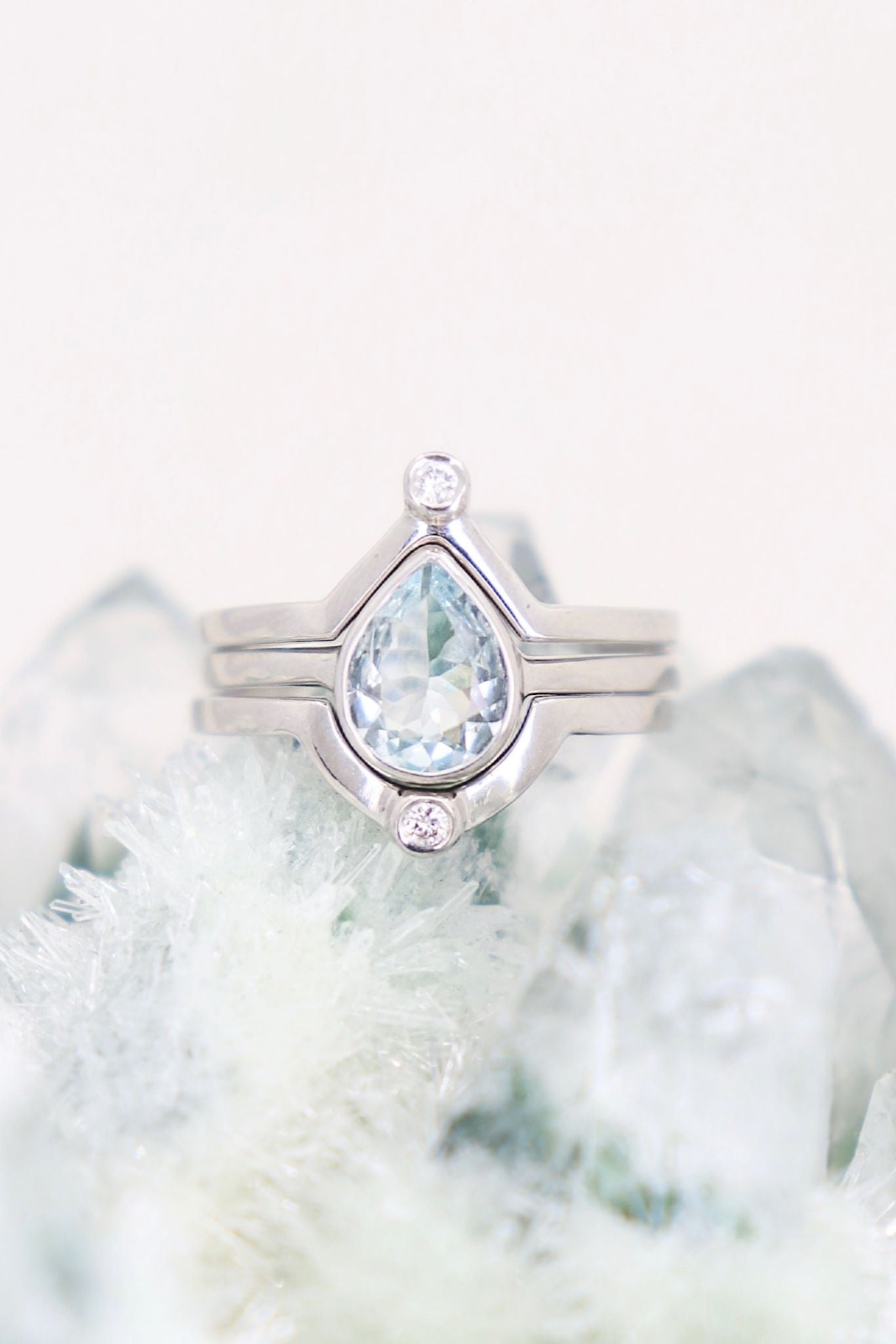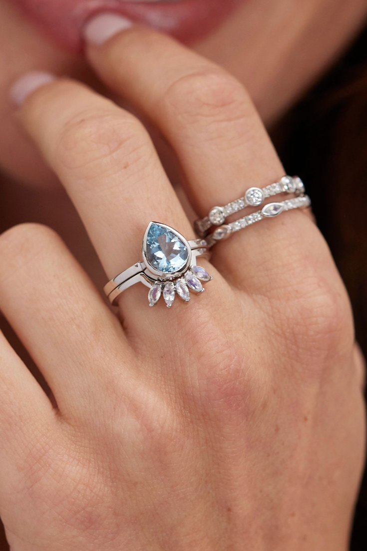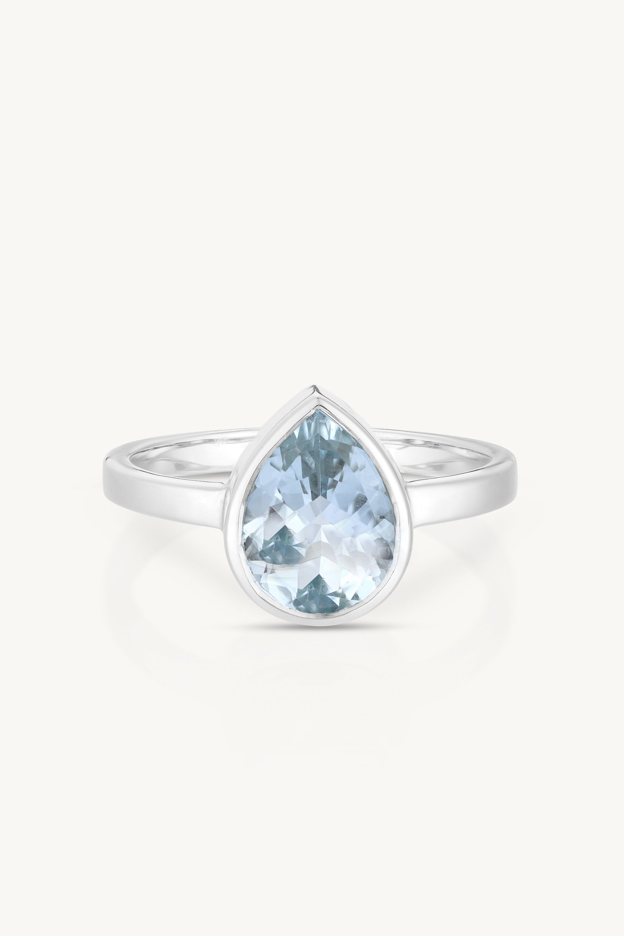 9K White Gold Aquamarine Tear Drop Ring