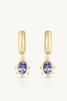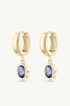 Our Gia Huggies feature a luminous hand faceted oval stone, bezel set with small ball detailing. Designed to hug the ear these earrings sit 2cm in length when worn.