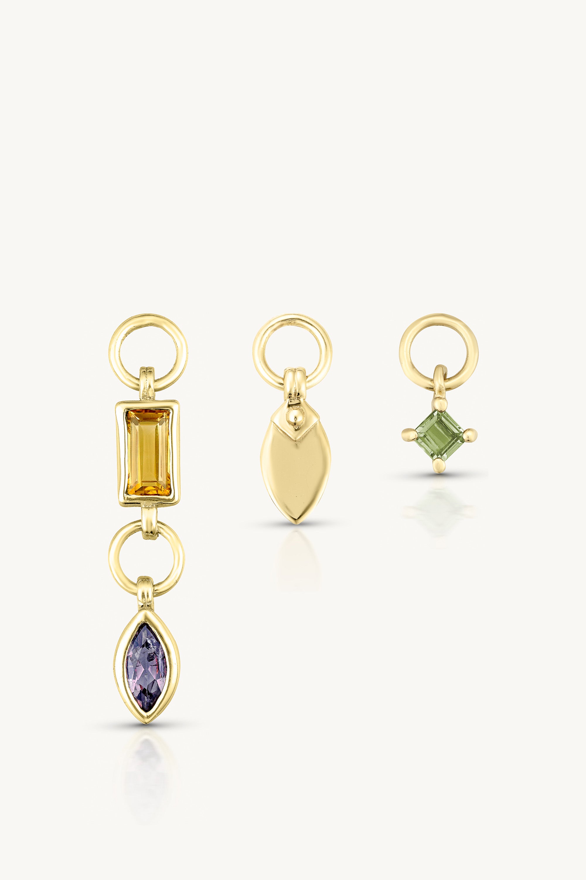 The Calypso Citrine Gold Ear Candy Stack incudes 3 individual charms.