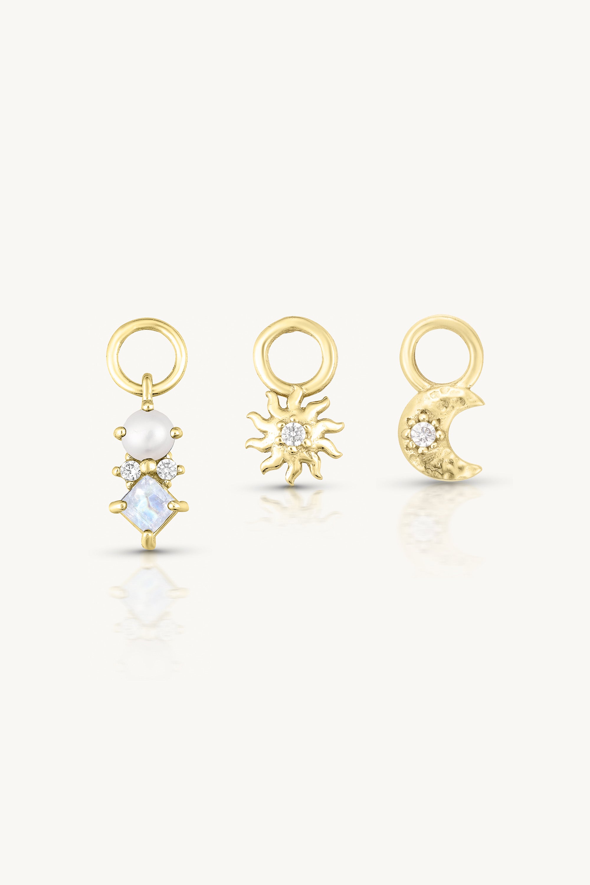 The Farah Pearl Gold Ear Candy Stack incudes 3 individual charms.
