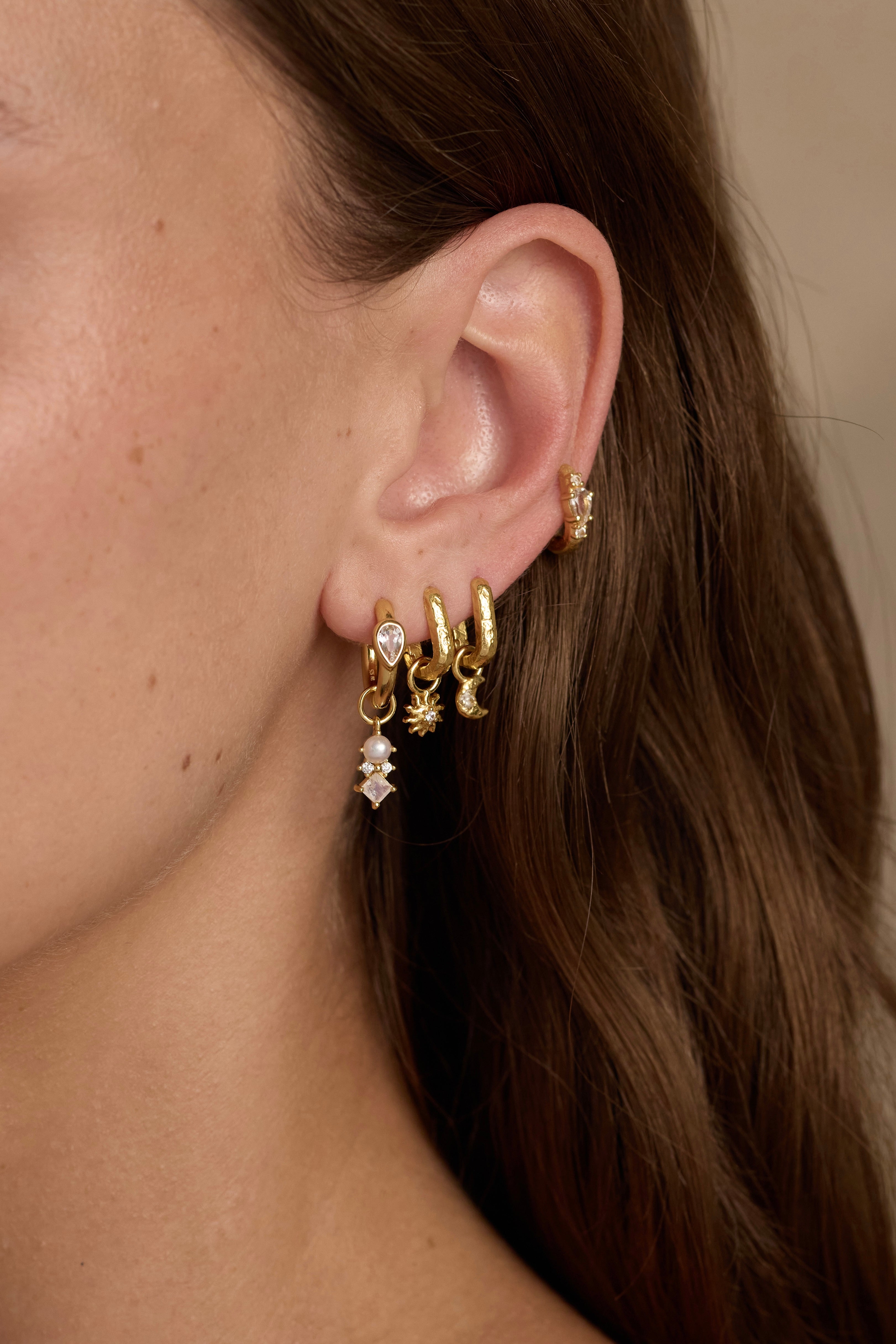 Discover our coveted range of Hoops, huggies and earing charms which you can mix and match to create your perfect layered earring stack - your jewels, your way.