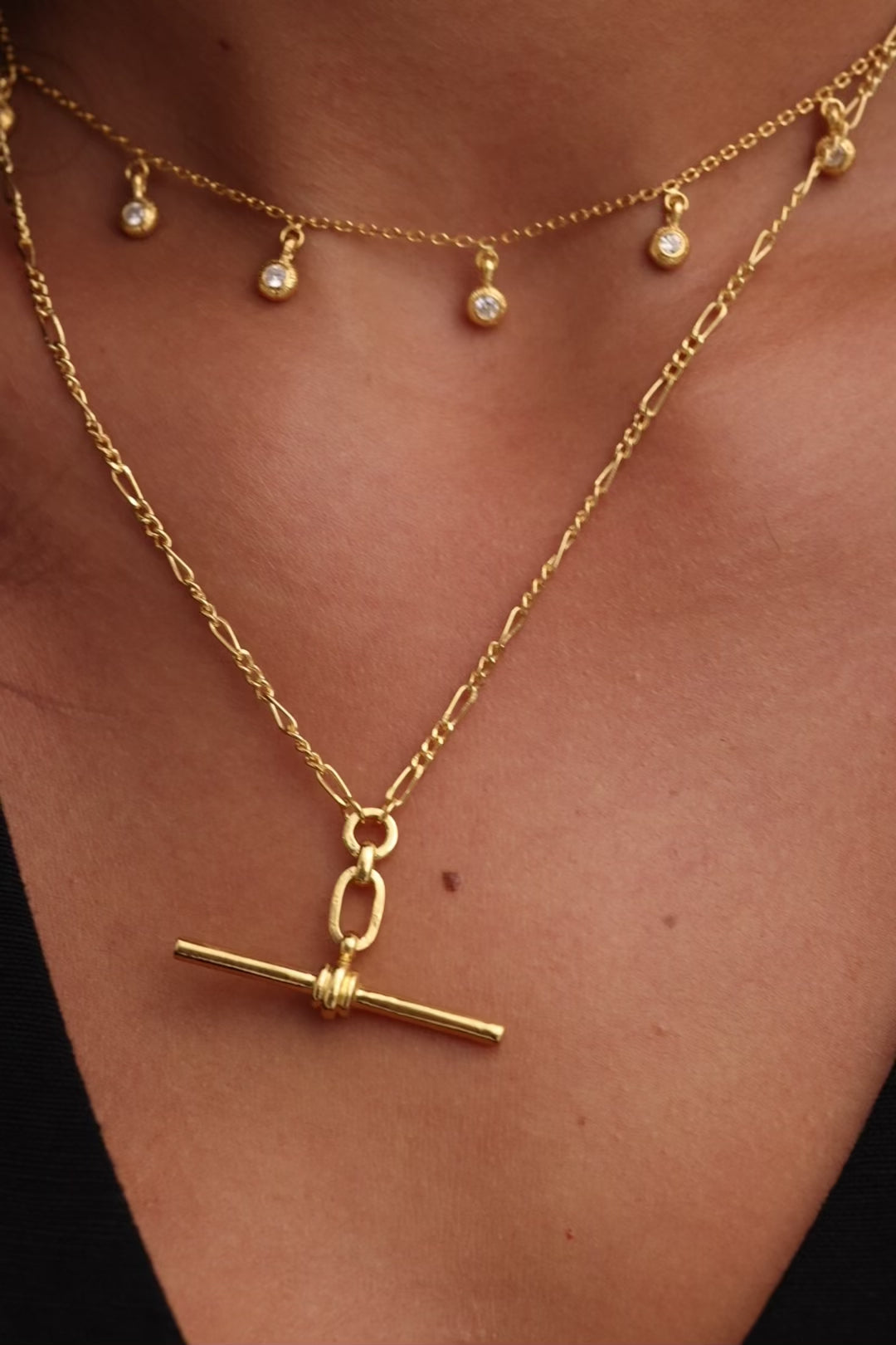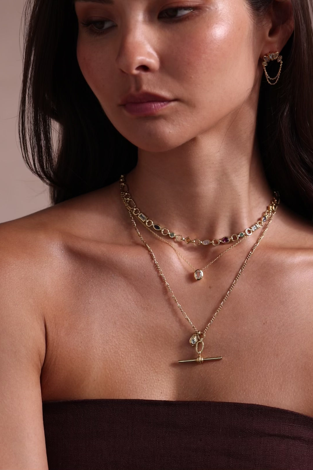 If you are looking to layer your ToniMay necklaces, particularly if you have styles where chain lengths are the same we recommend getting your hands on one of our chain extenders which will allow you to mix and match your chain lengths for layering. Our chain extenders can be used with all lobster clasp chains however are not able to be used with our toggle clasp necklaces such as the Herkimer, Alchemy or Lost Pearl necklaces.