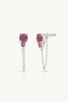 Each birthstone is claw-set in both a larger Ruby and smaller Pink Tourmaline stone, creating a subtle ombre effect. A versatile and delicate chain loops from the front of the stud, allowing you to adjust its placement.