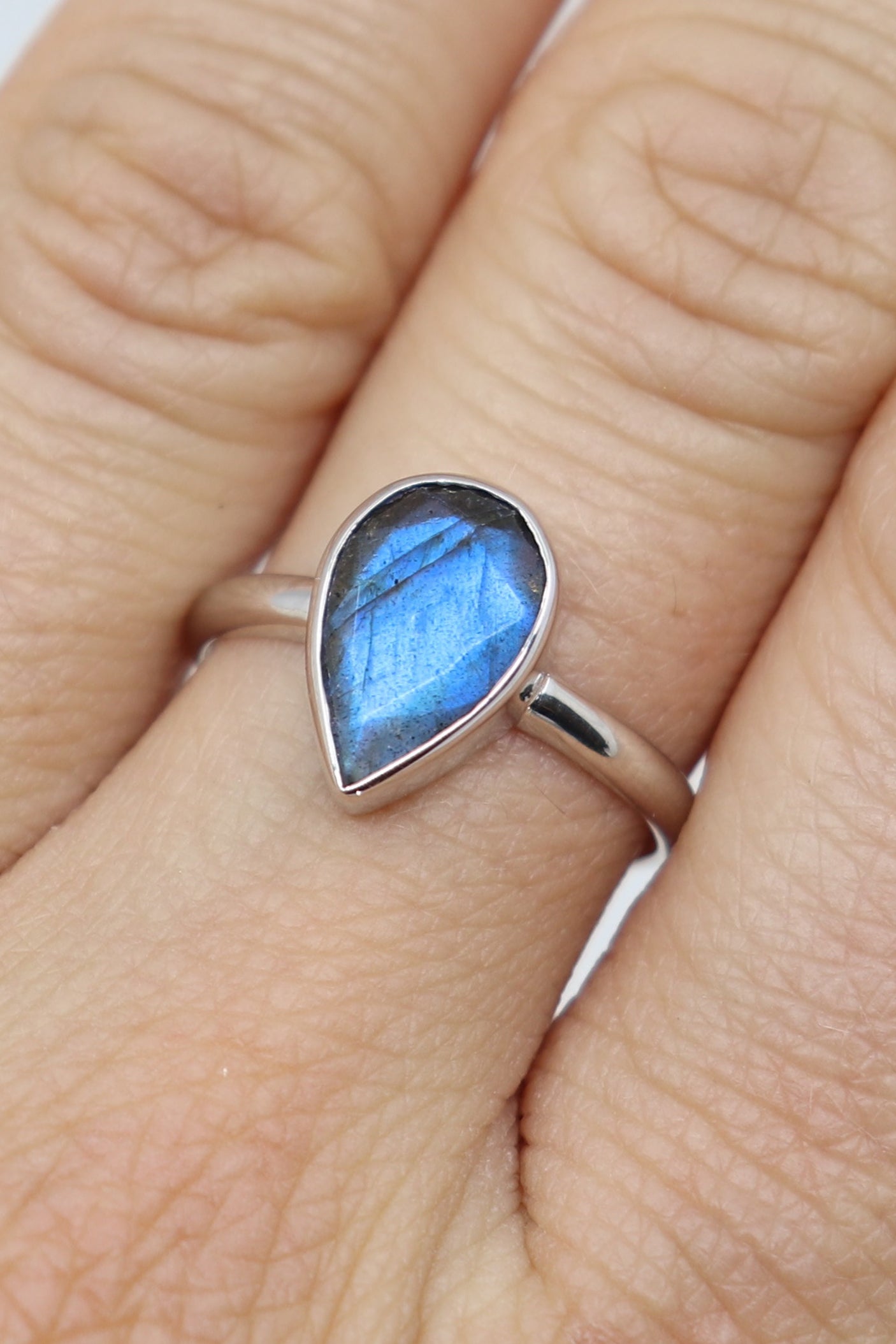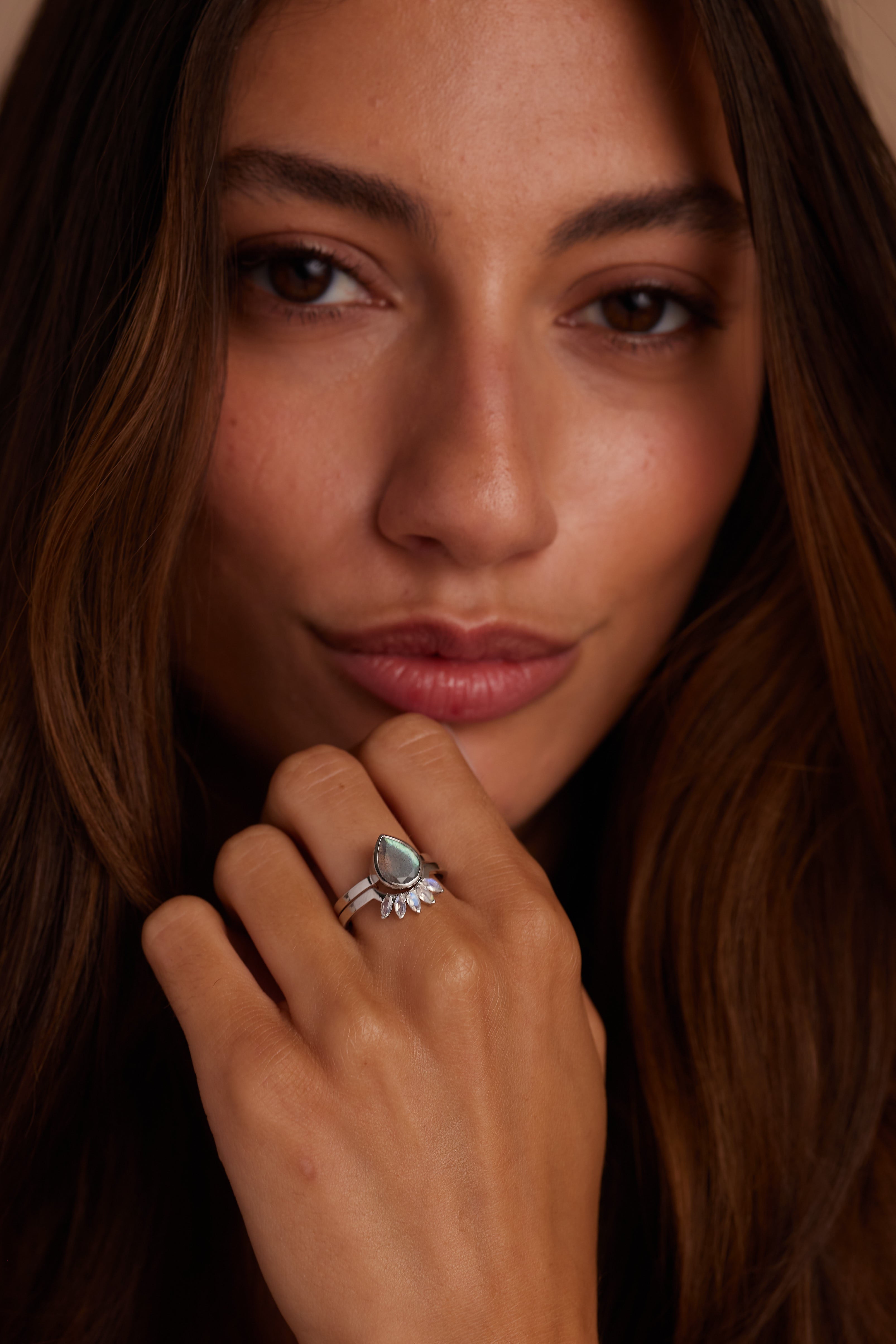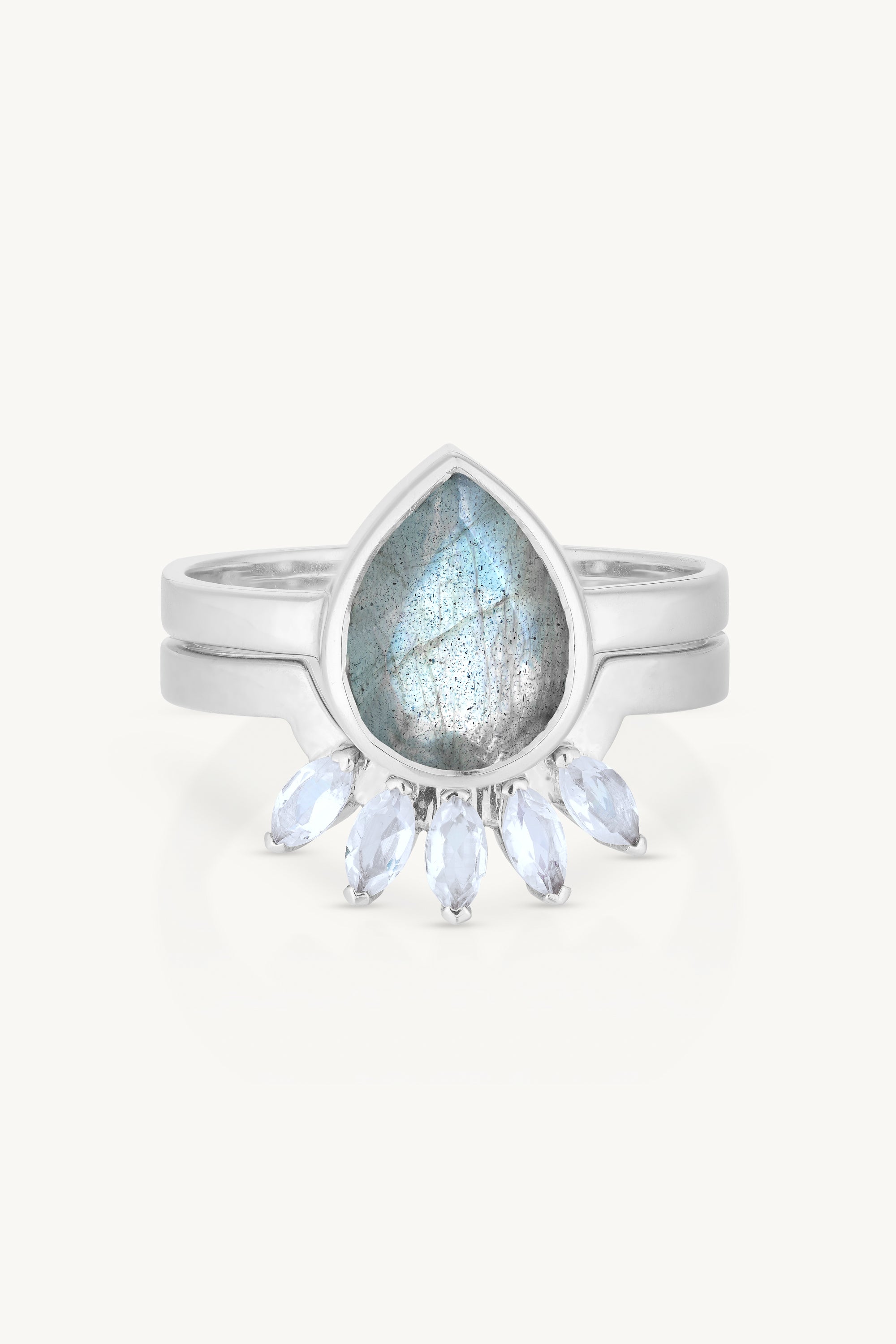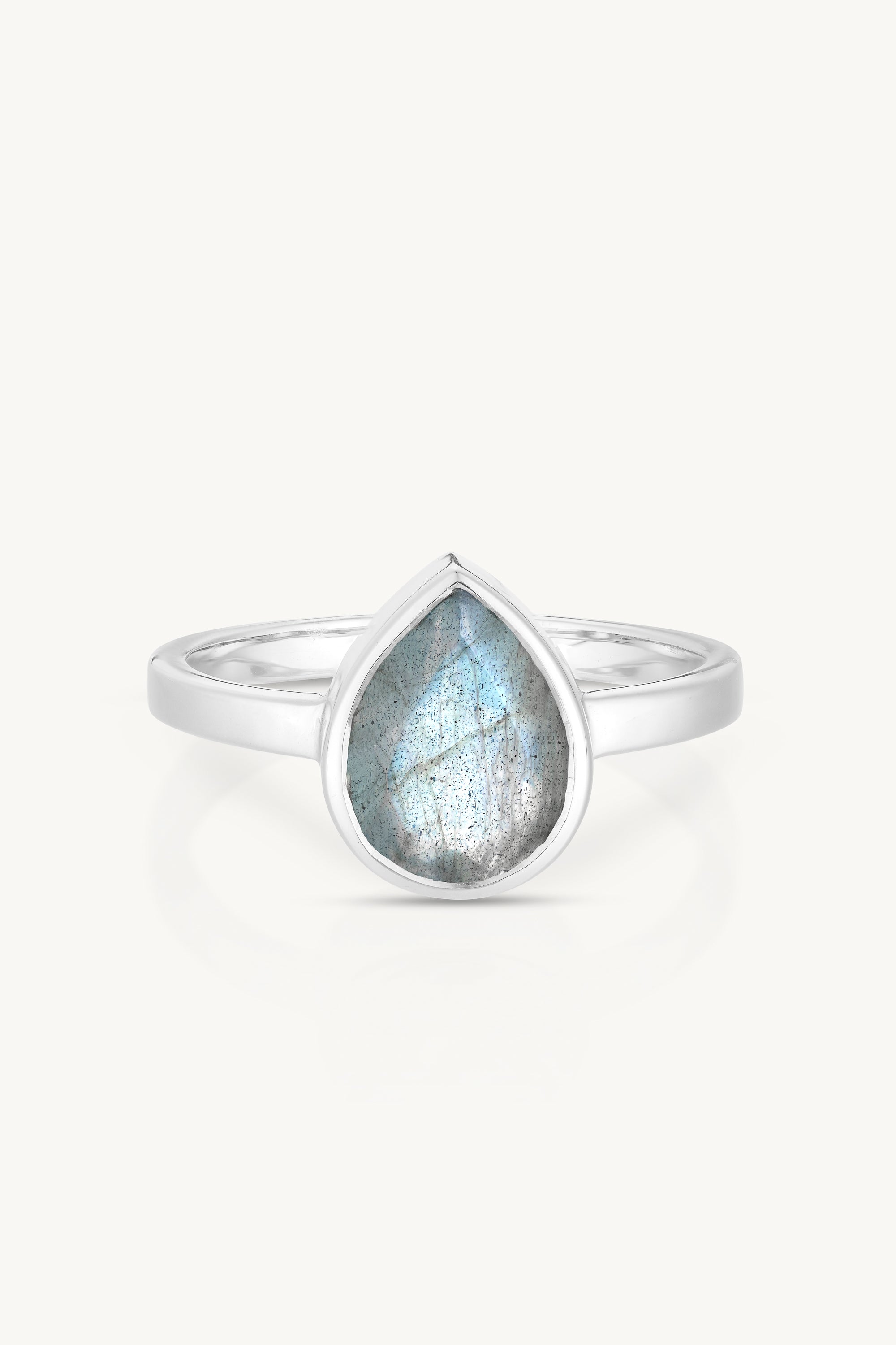 9K White Gold Labradorite Tear Drop Ring