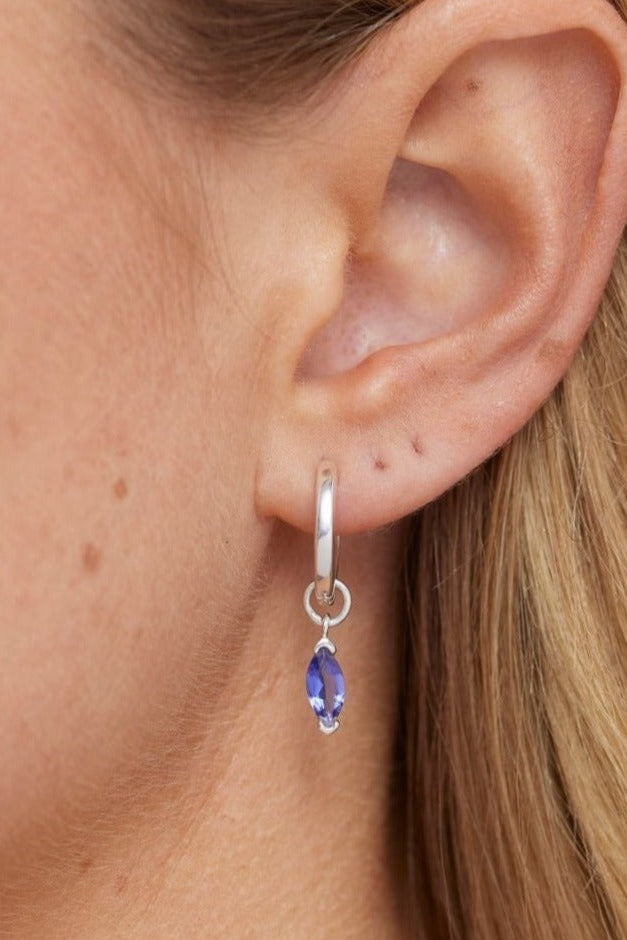 The Marquise Earring Charm features a natural hand cut 8x4mm stone set with a capped claw set ends . The charm swings freely on its hoop.