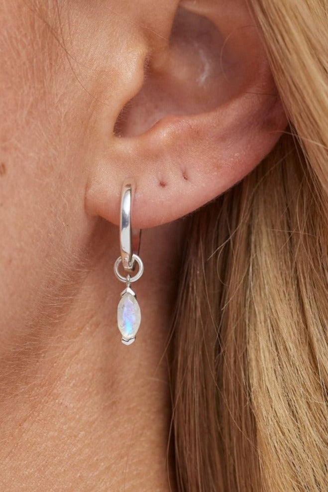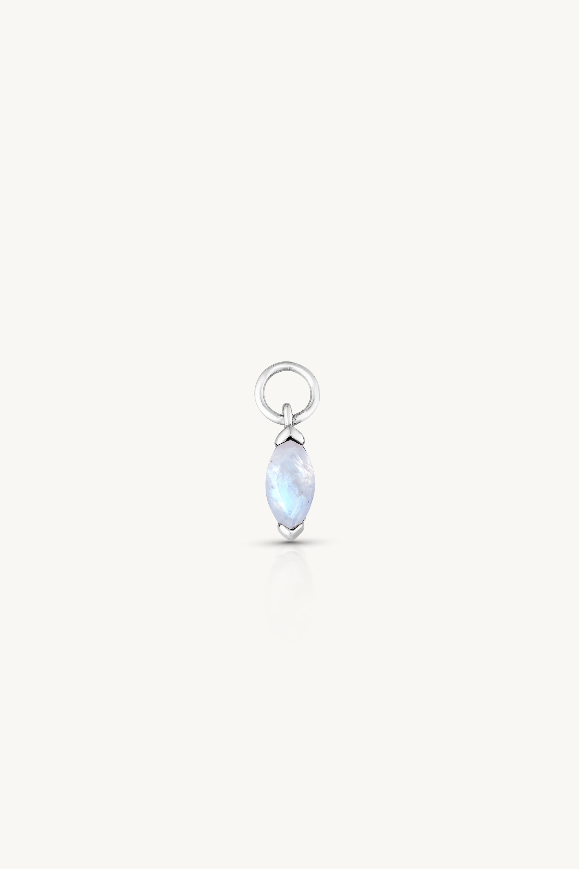 The Marquise Earring Charm is available in 4 stone options with Apatite, Moonstone, Iolite and Rhodolite.