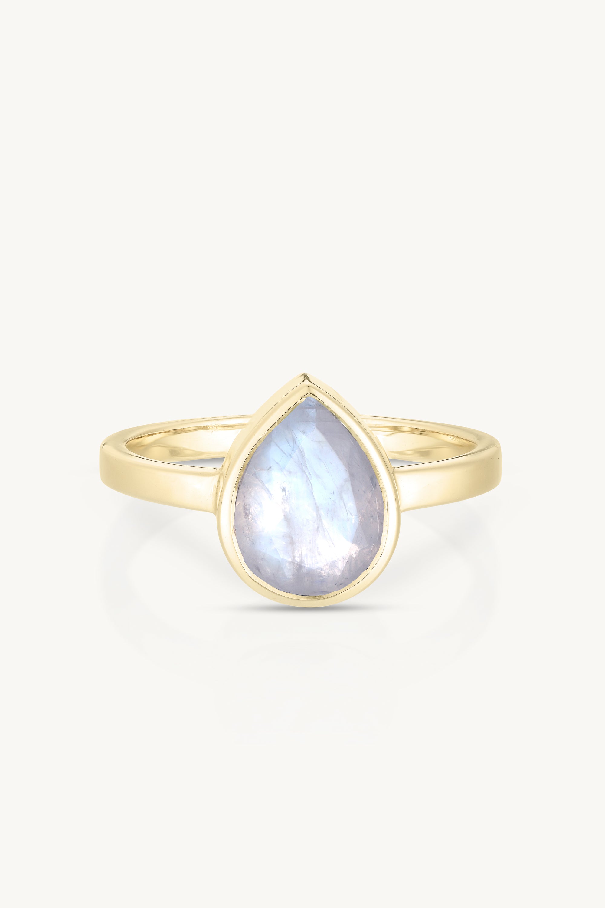 Precious whimsical Moonstone set in 9K Solid Gold. This beautiful iridescent piece of Moonstone captures beautiful blue, flashes when hit by light.