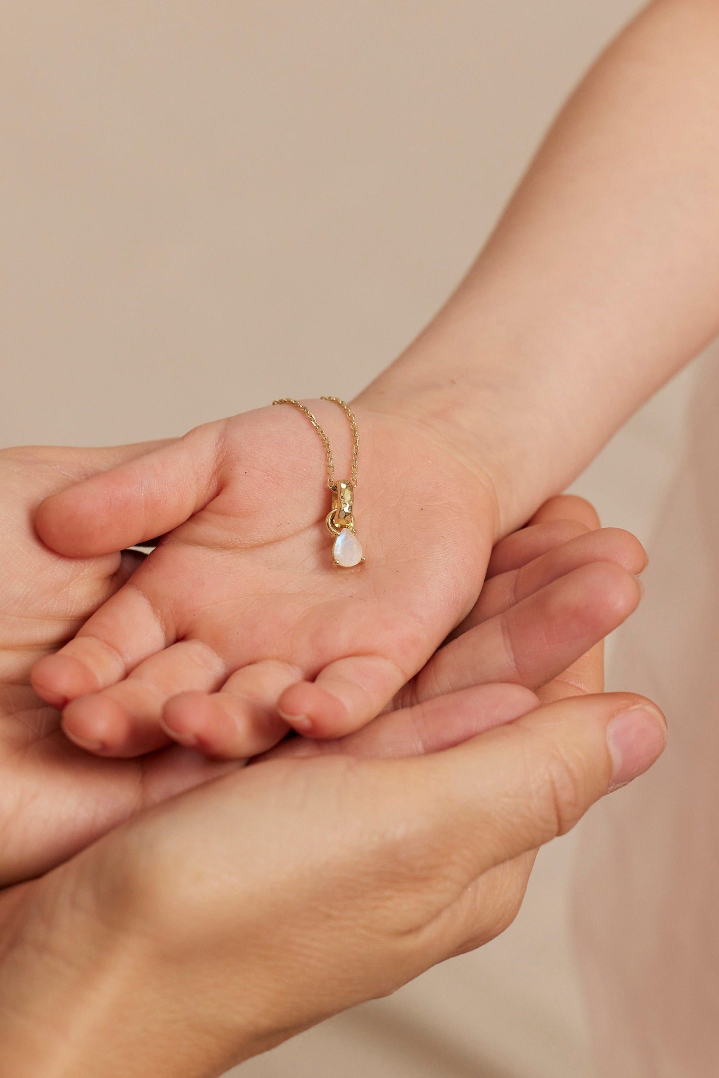 Our beloved My Rainbow Necklace is back, designed to cherish the loves we hold in our hands and the ones that live in our hearts. Featuring Rainbow Moonstone, a stone of fertility, new beginnings and healing, this pieces is a tribute to the many forms of Motherhood.