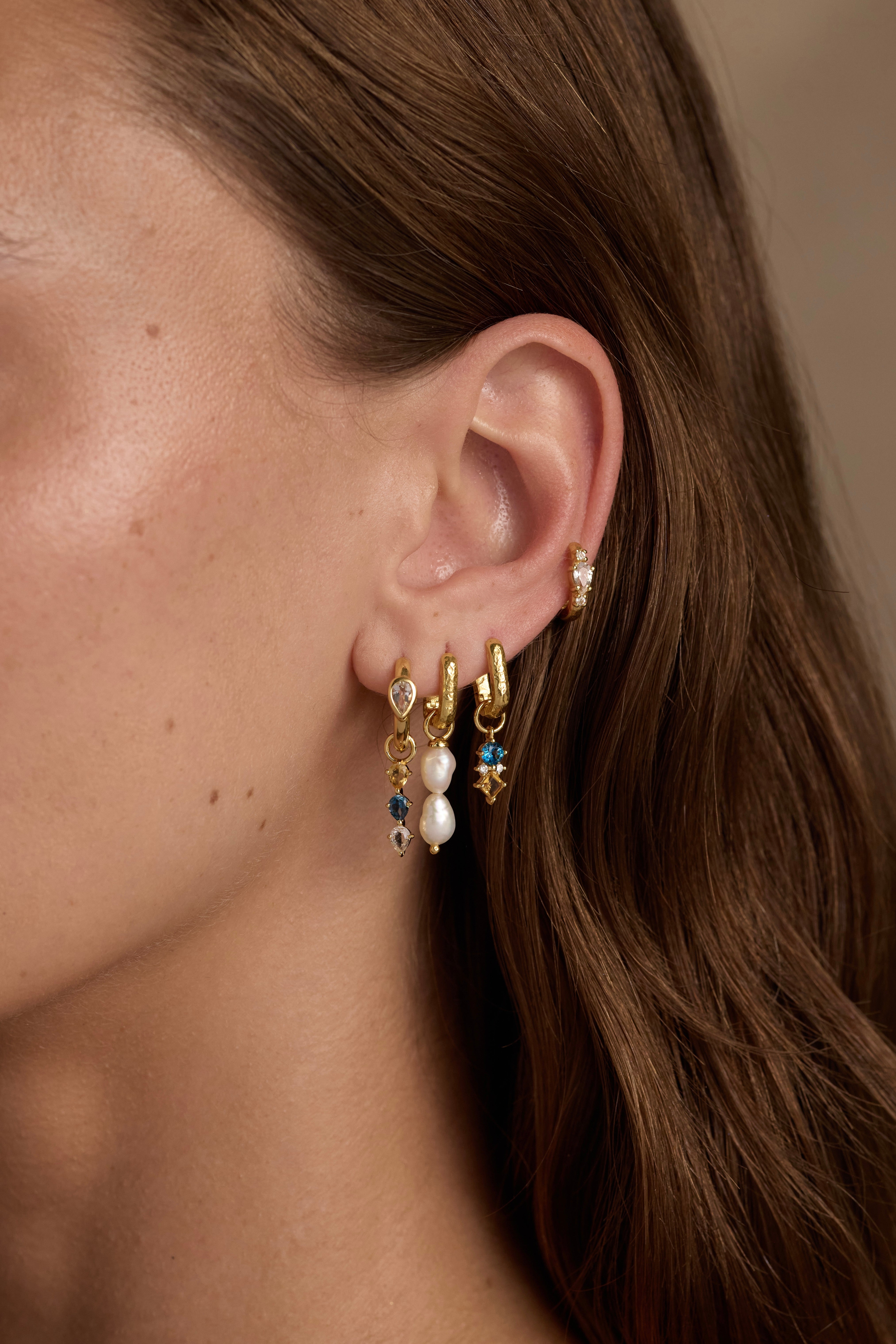 Discover our coveted range of Hoops, huggies and earing charms which you can mix and match to create your perfect layered earring stack - your jewels, your way.