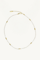 The Pearl Necklace features natural fresh water pearls woven onto the necklace and dispersed with textured gold beading.