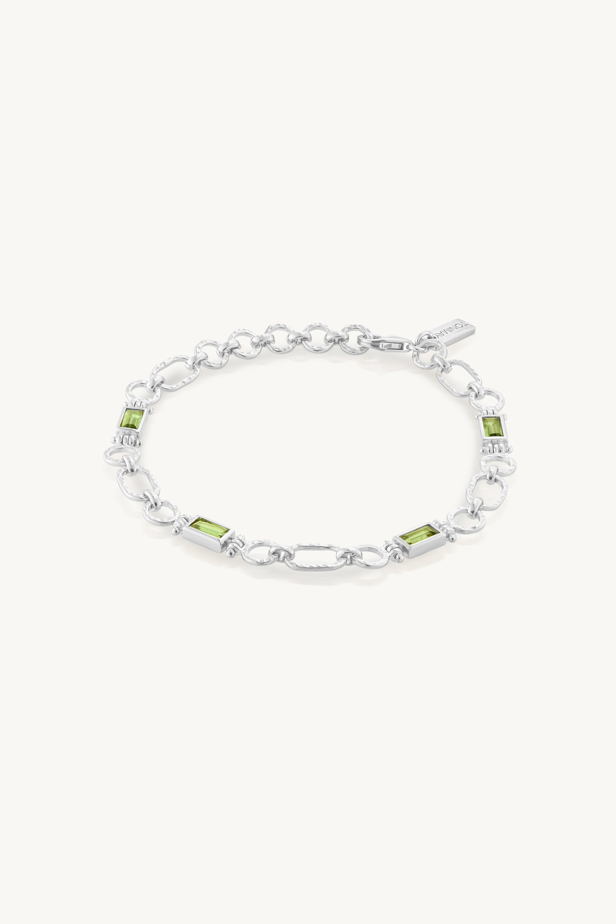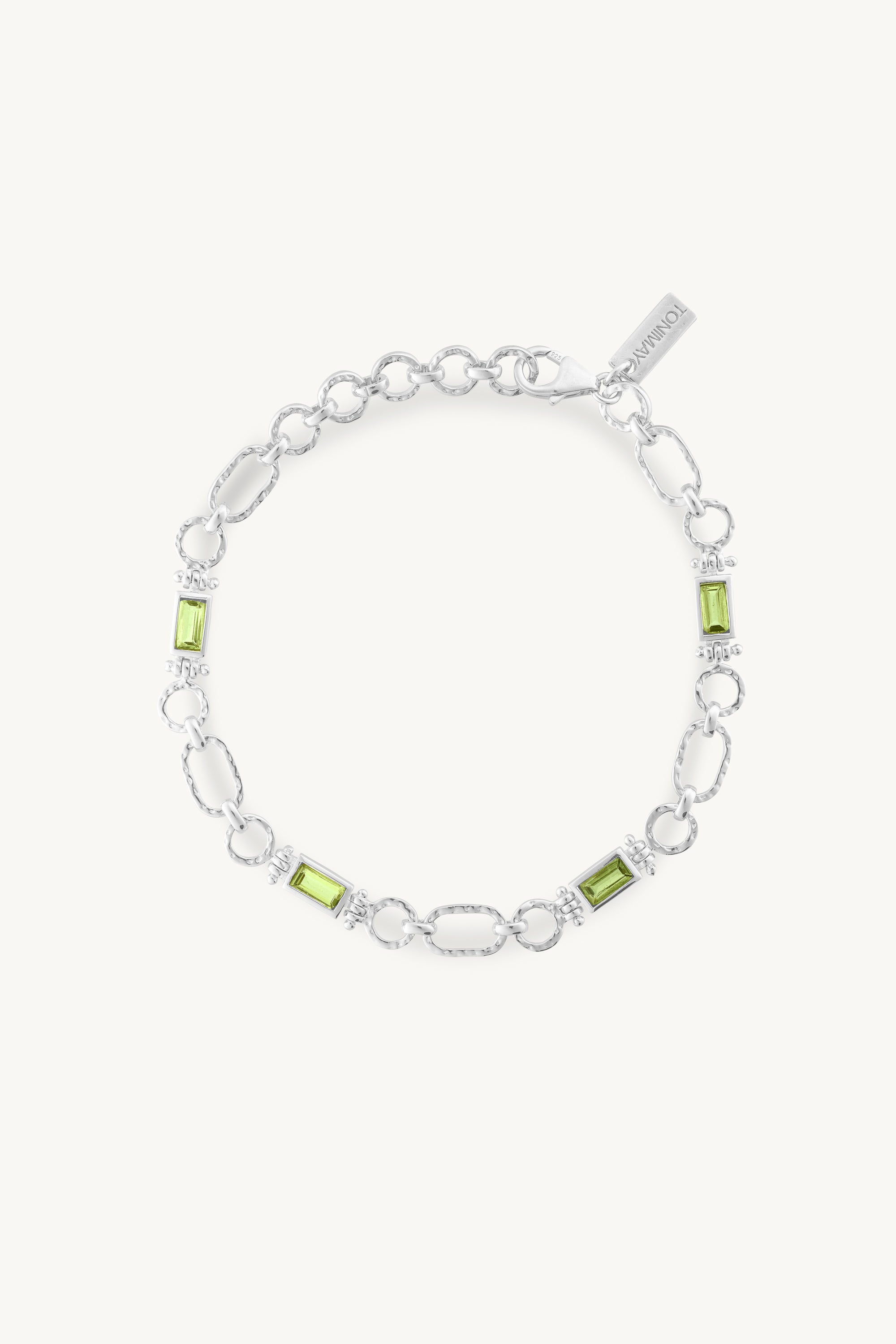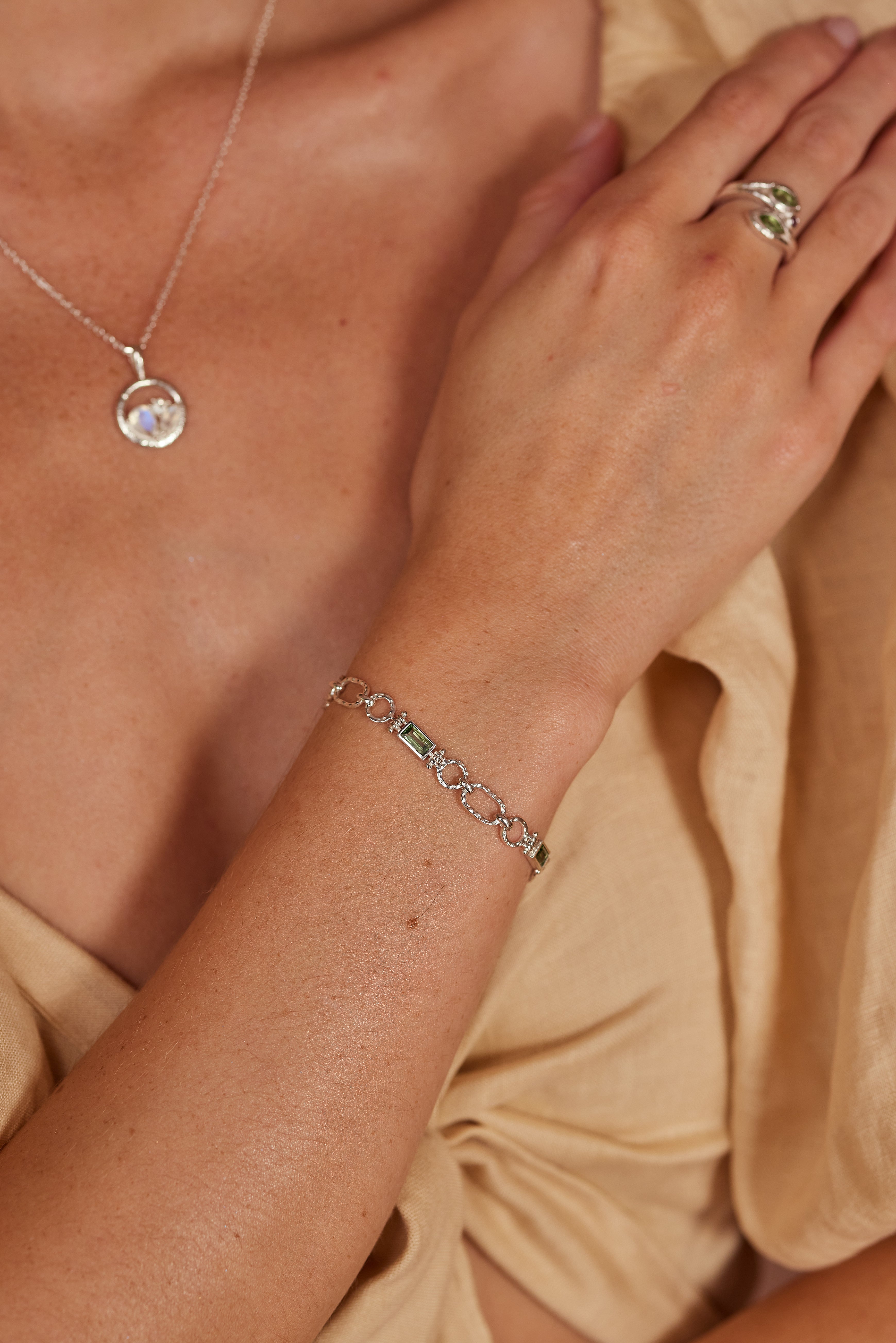 With a unique chain design and baguette-cut Apatite stones nestled within, it's a standout on its own or the perfect addition to your bracelet stack.