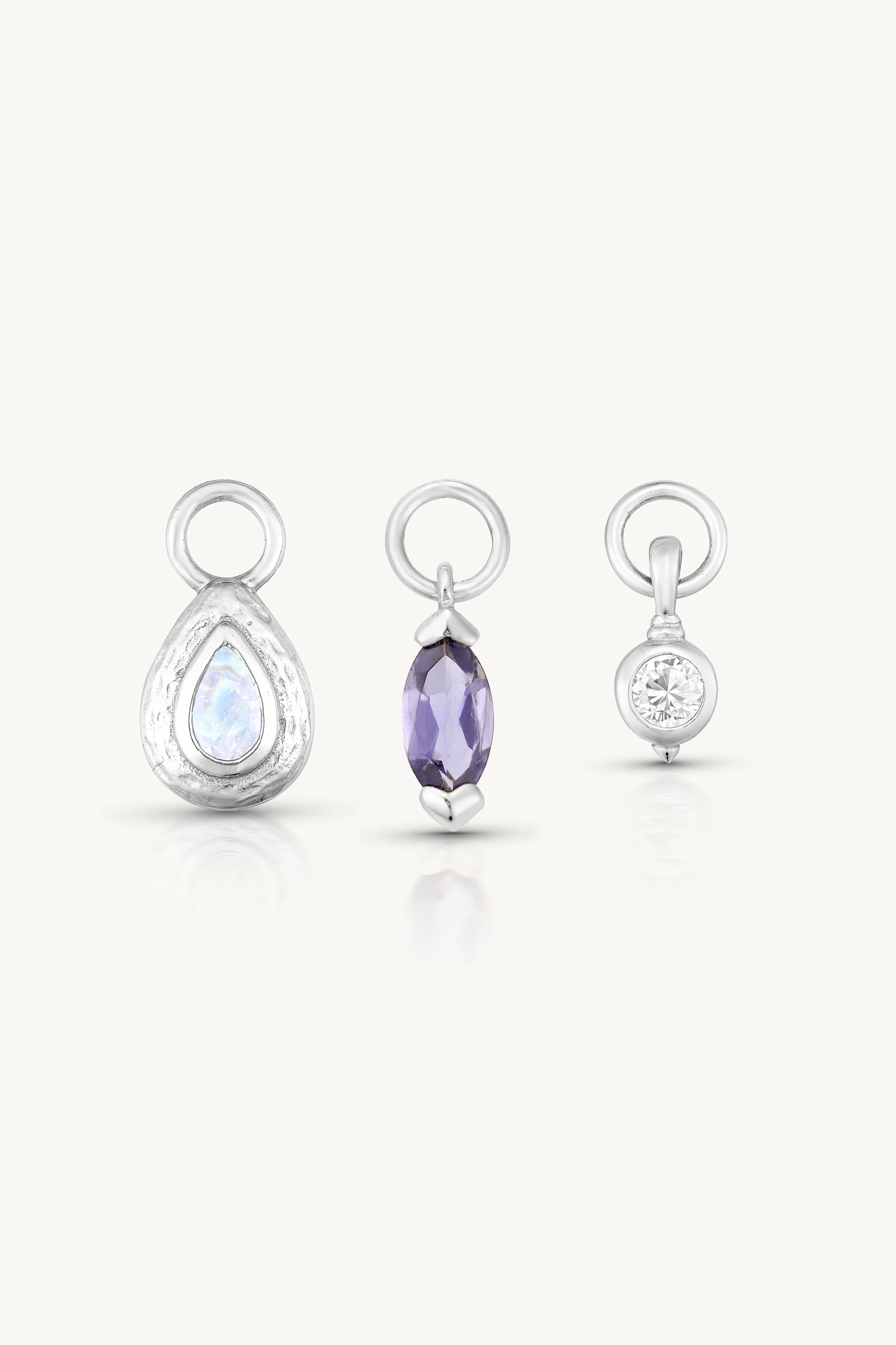 The Petrichor Iolite Silver Ear Candy Stack includes 3 individual charms.